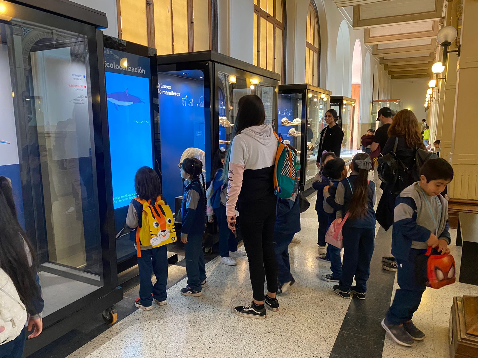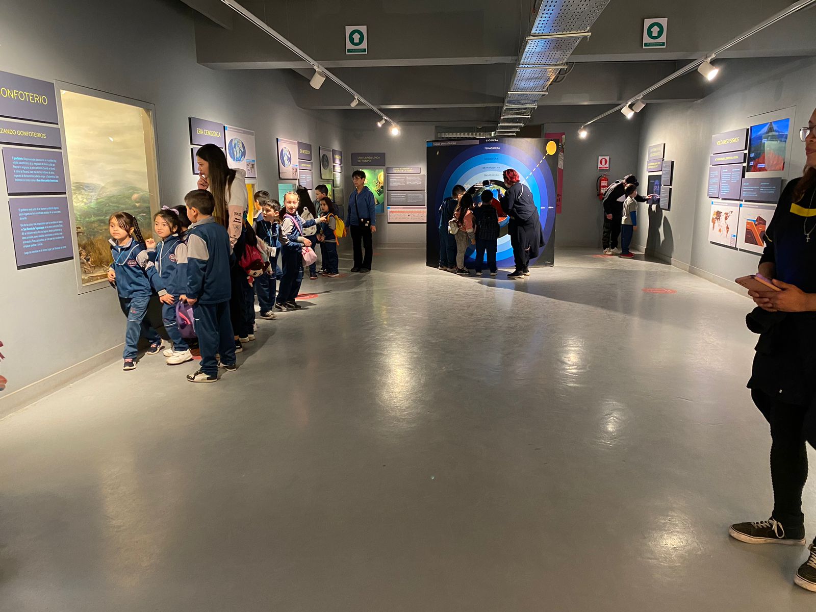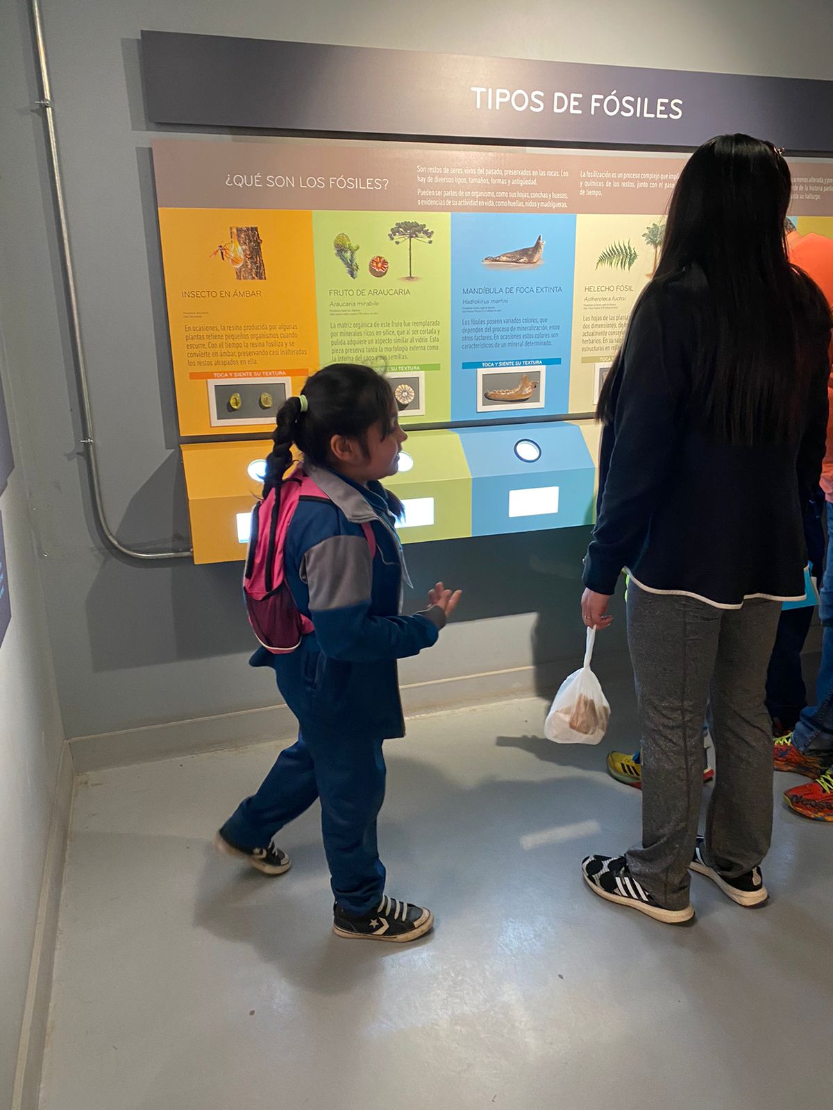 Allí se maravillaron con los restos fósiles y la sala principal llena de novedades, pudiendo ver desde cerca una extensión de la sala de clases y sus aprendizajes.