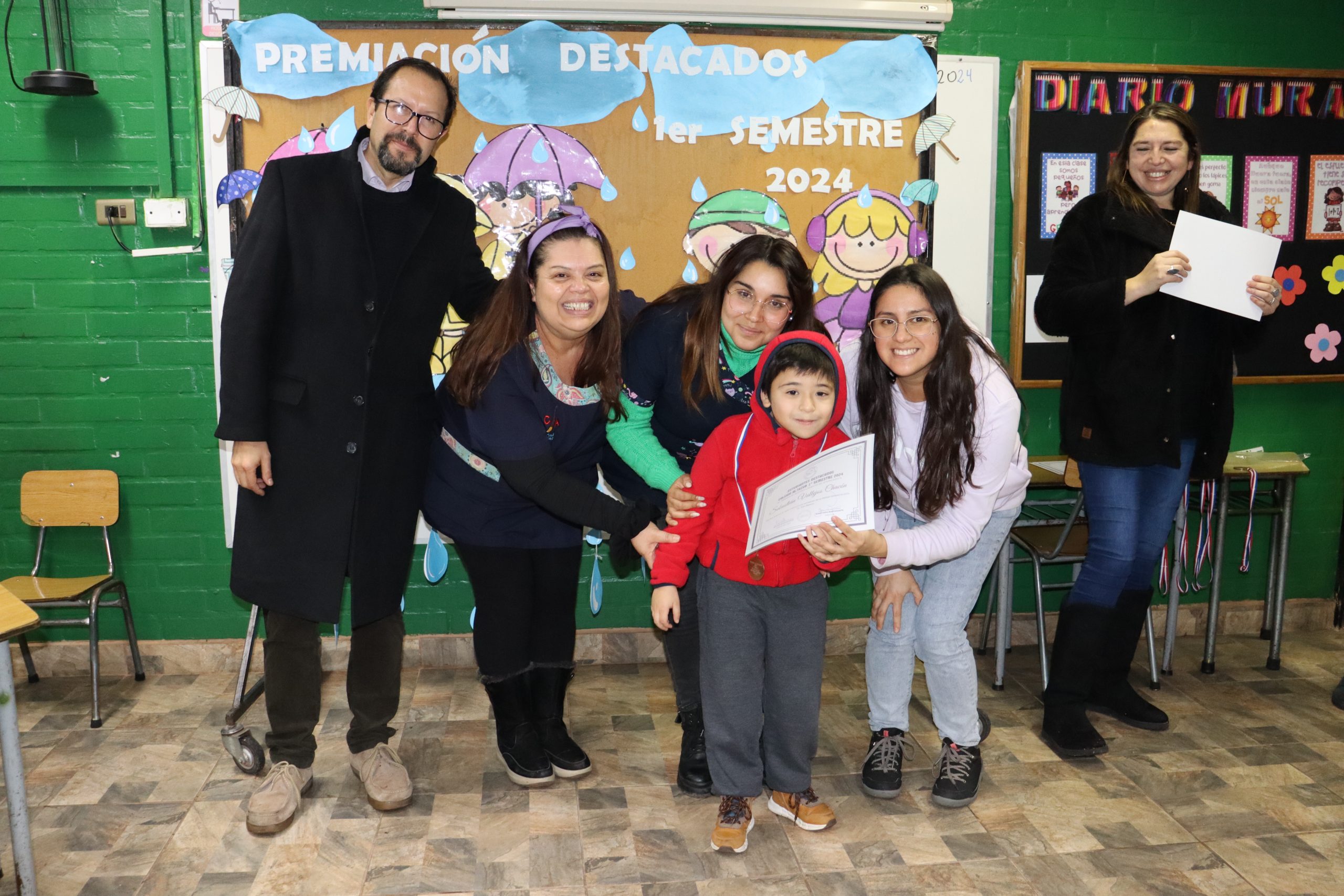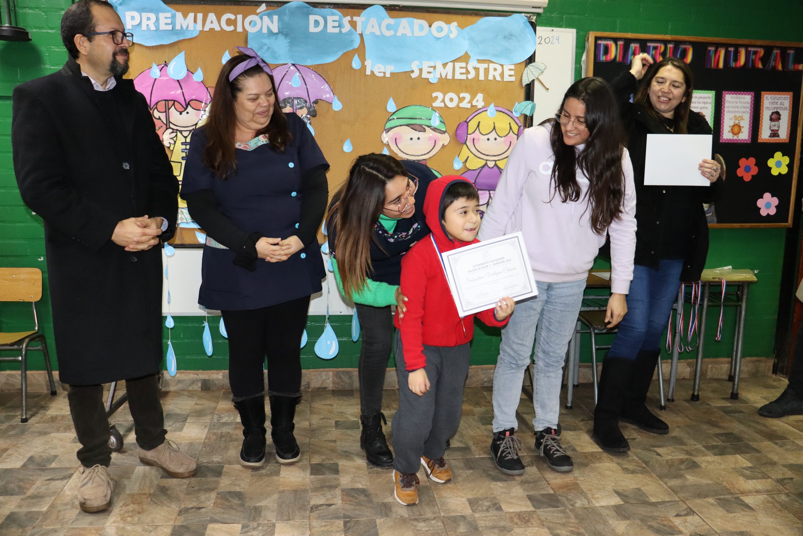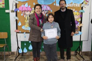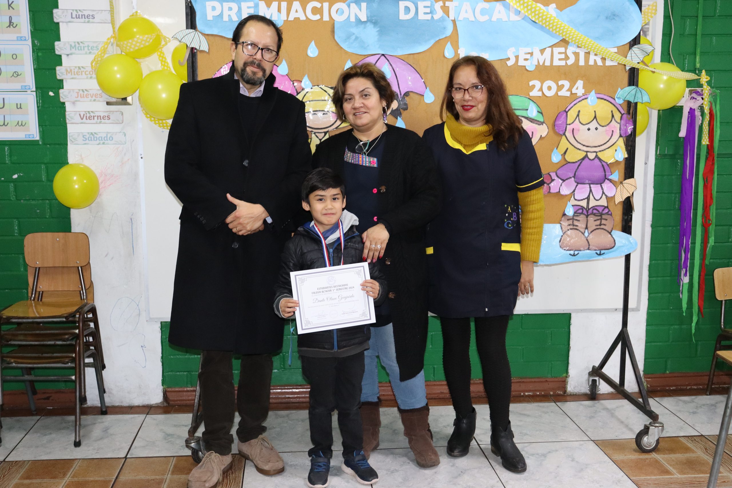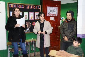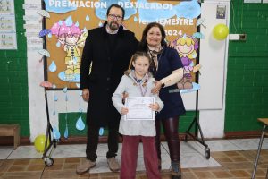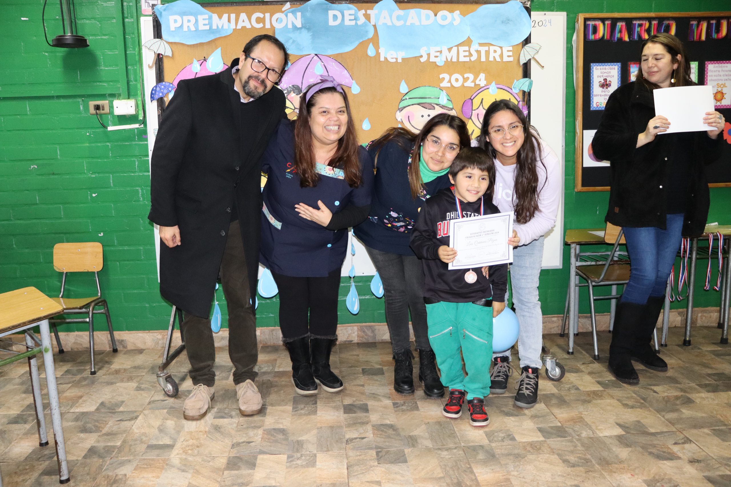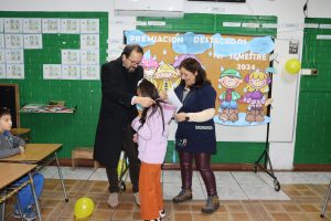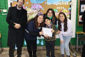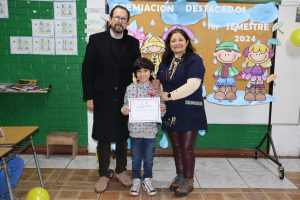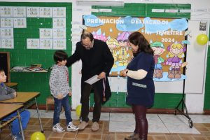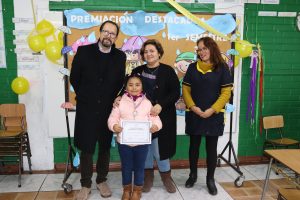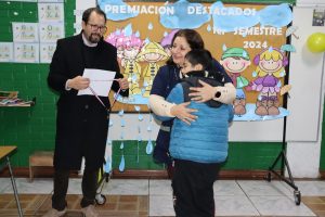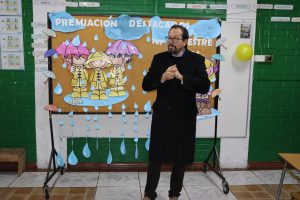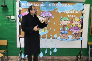 «La lluvia y el frío no fueron impedimento para reconocer a nuestros estudiantes más valiosos, con el ingenio y trabajo de nuestros equipos de aula logramos llevar un mini escenario a las salas de clases y visitar a cada uno de los cursos para realizar la entrega de medallas y diplomas a nuestros estudiantes destacados.