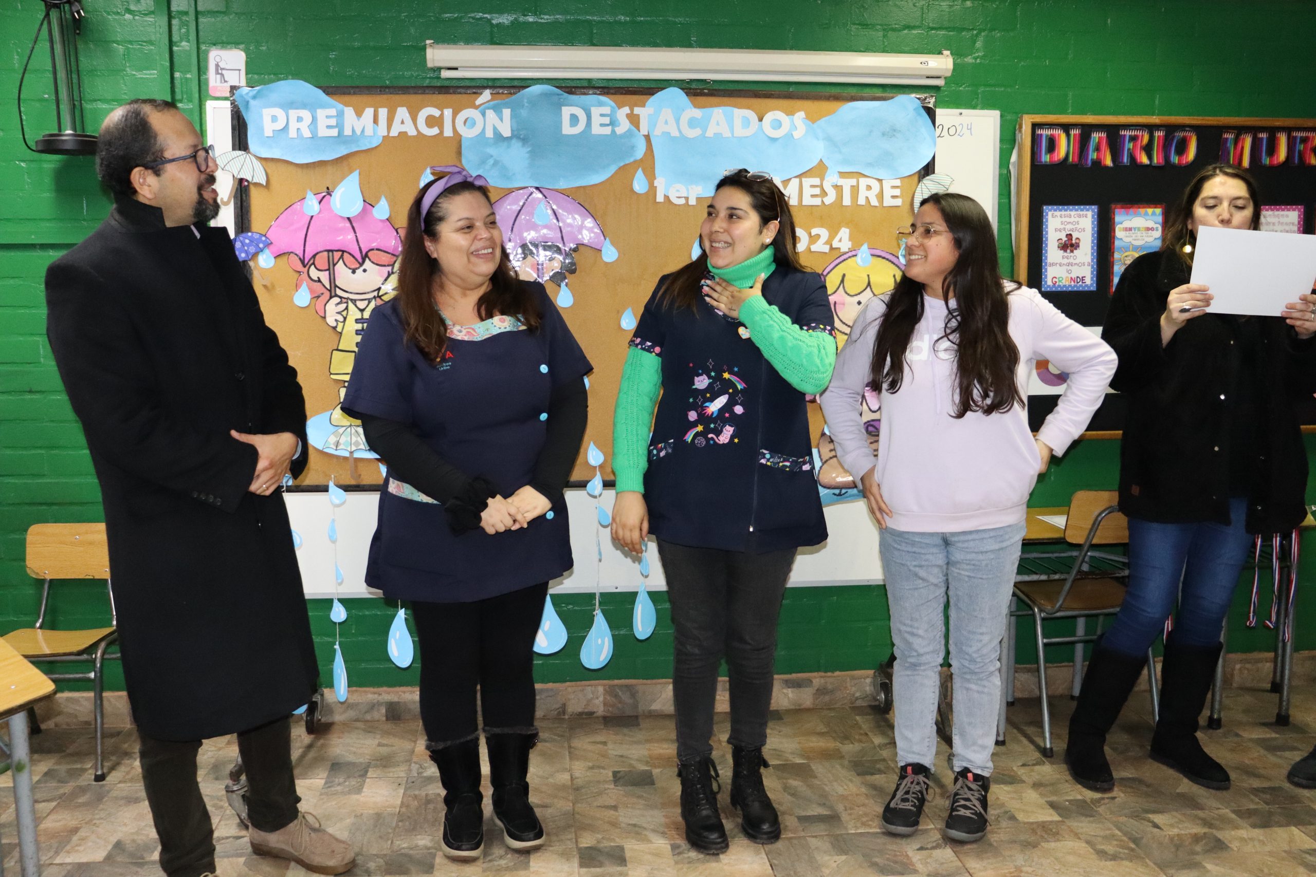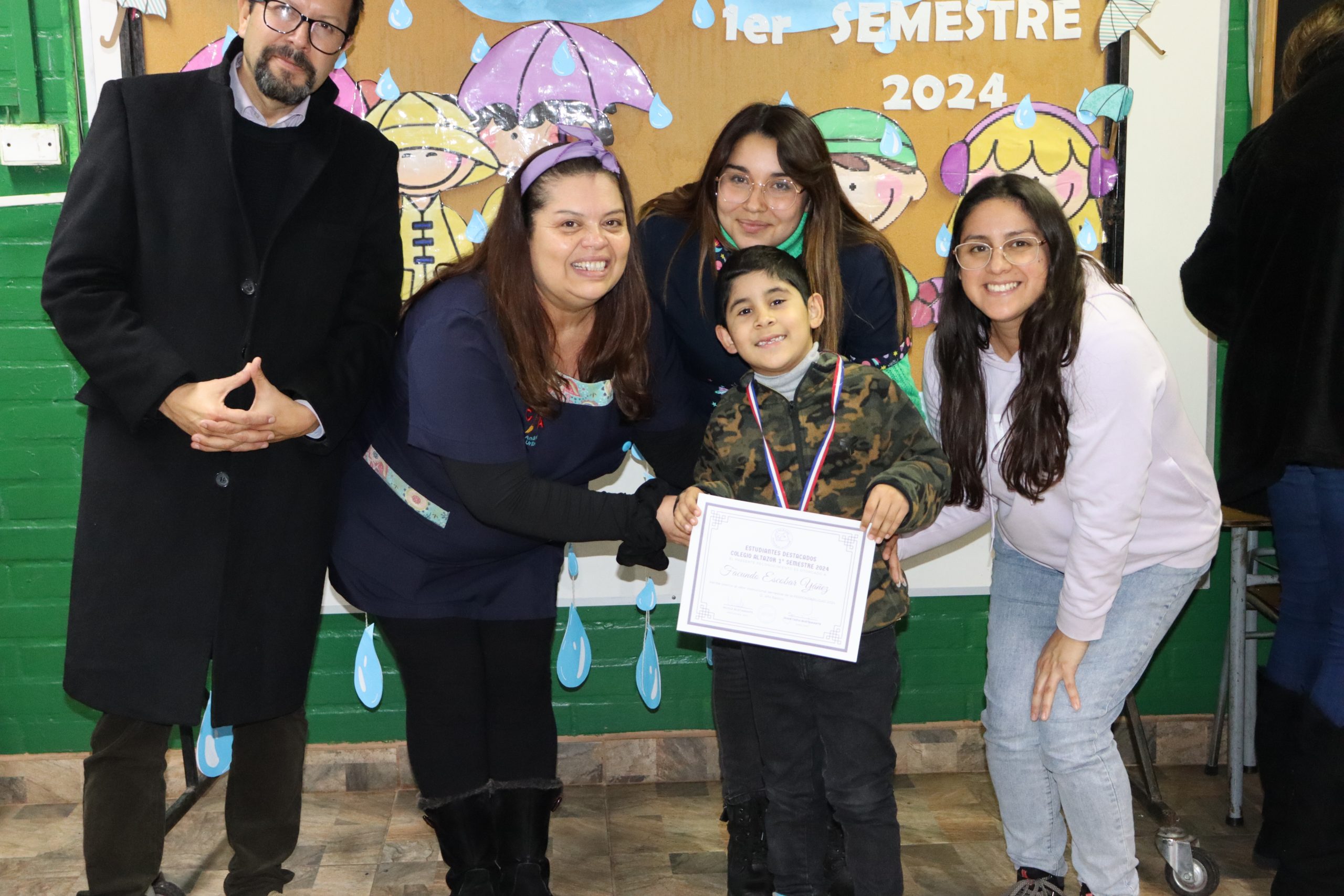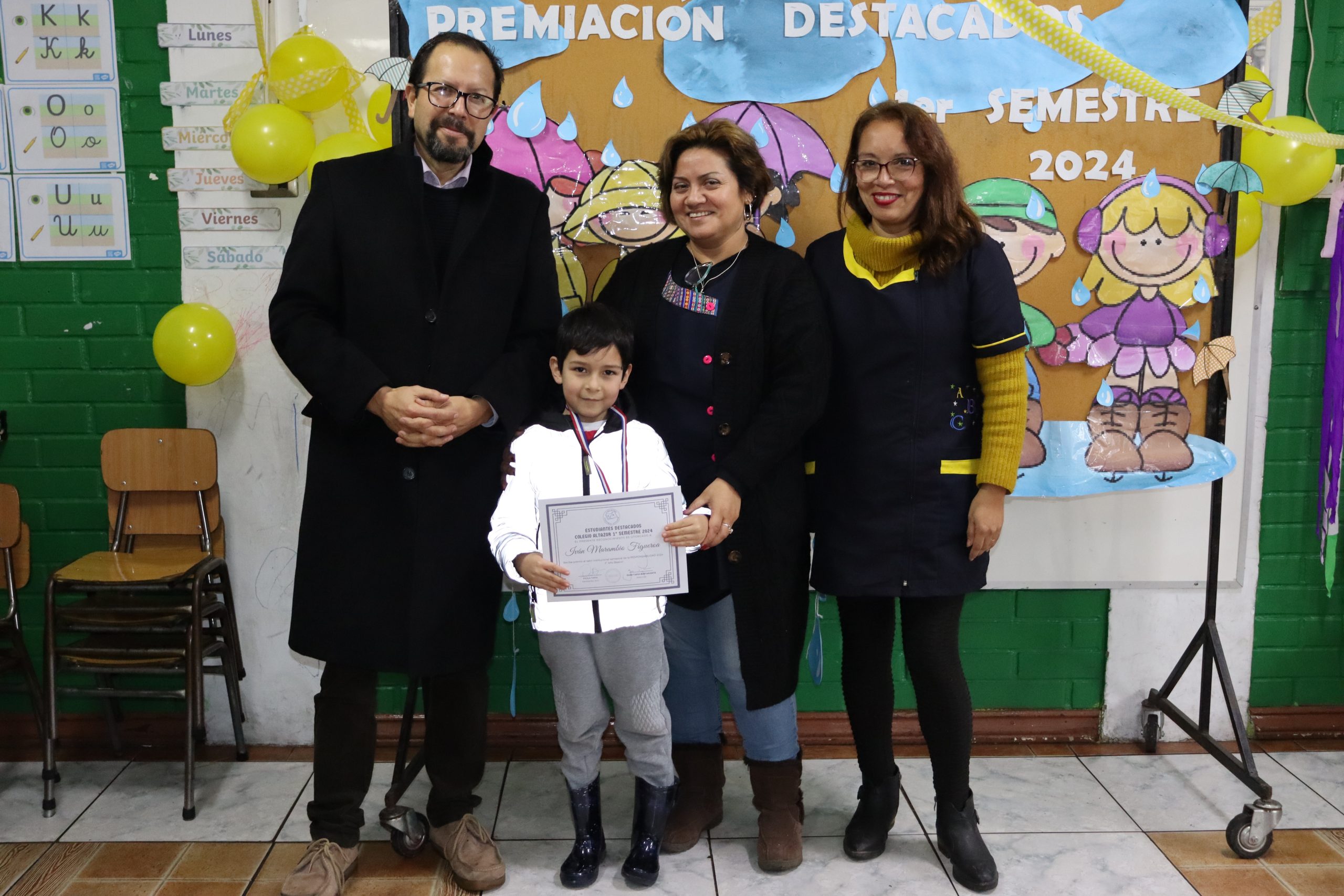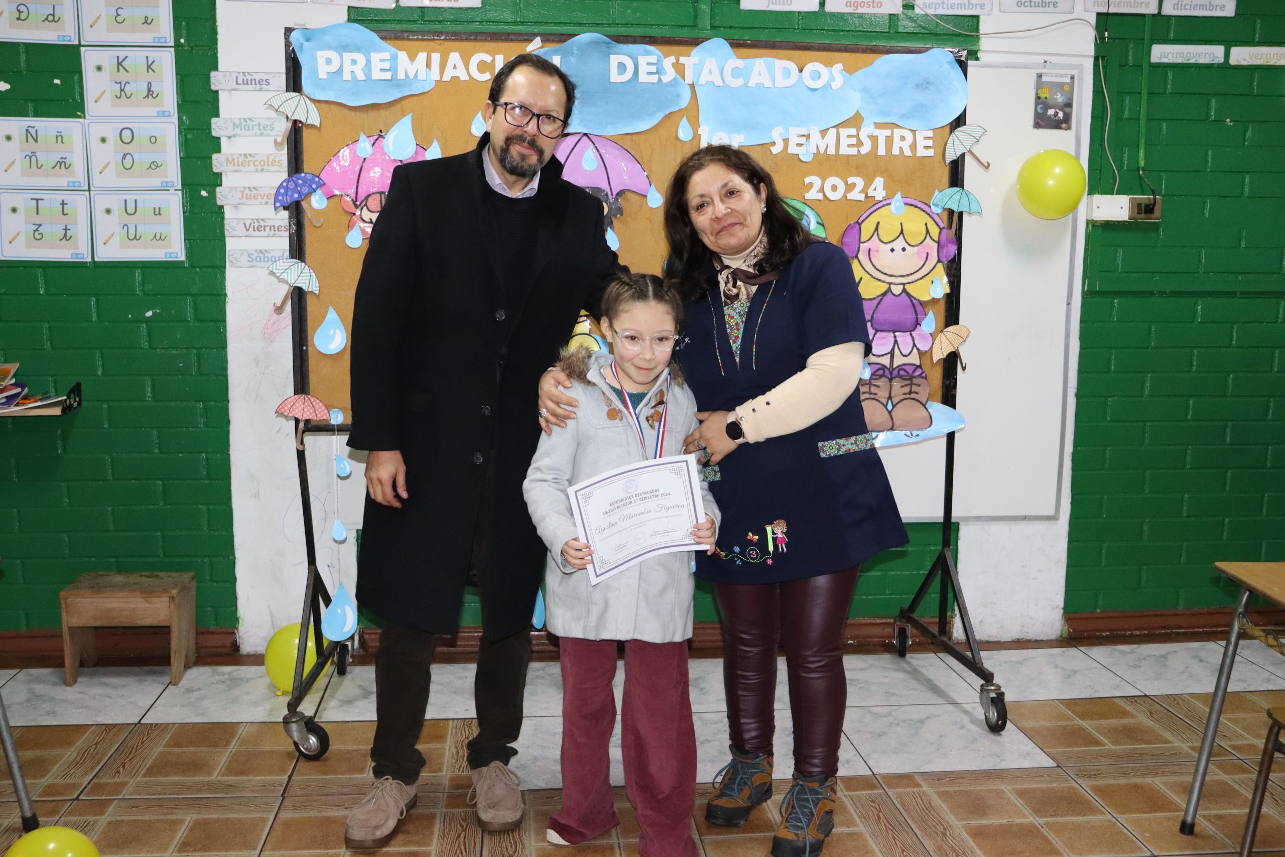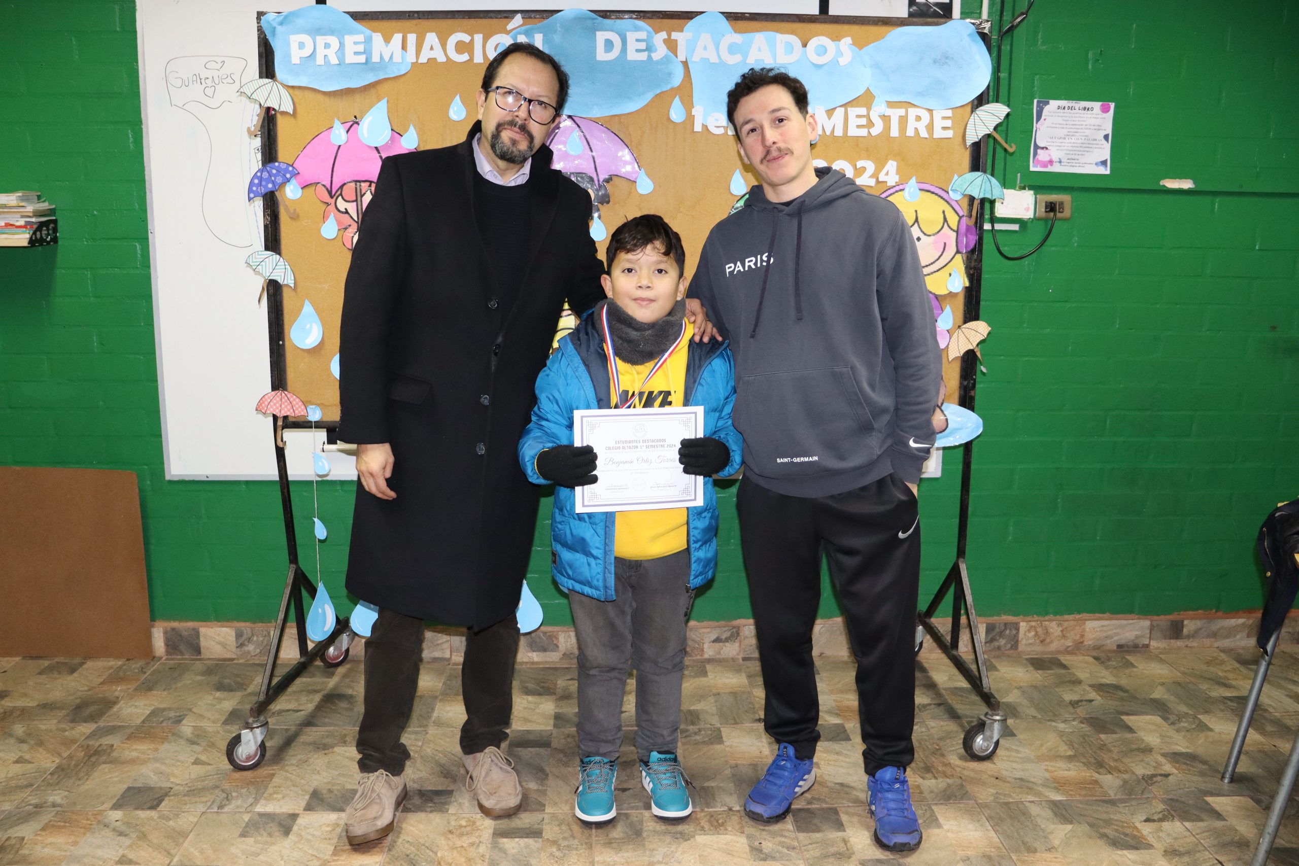 «La lluvia y el frío no fueron impedimento para reconocer a nuestros estudiantes más valiosos, con el ingenio y trabajo de nuestros equipos de aula logramos llevar un mini escenario a las salas de clases y visitar a cada uno de los cursos para realizar la entrega de medallas y diplomas a nuestros estudiantes destacados.