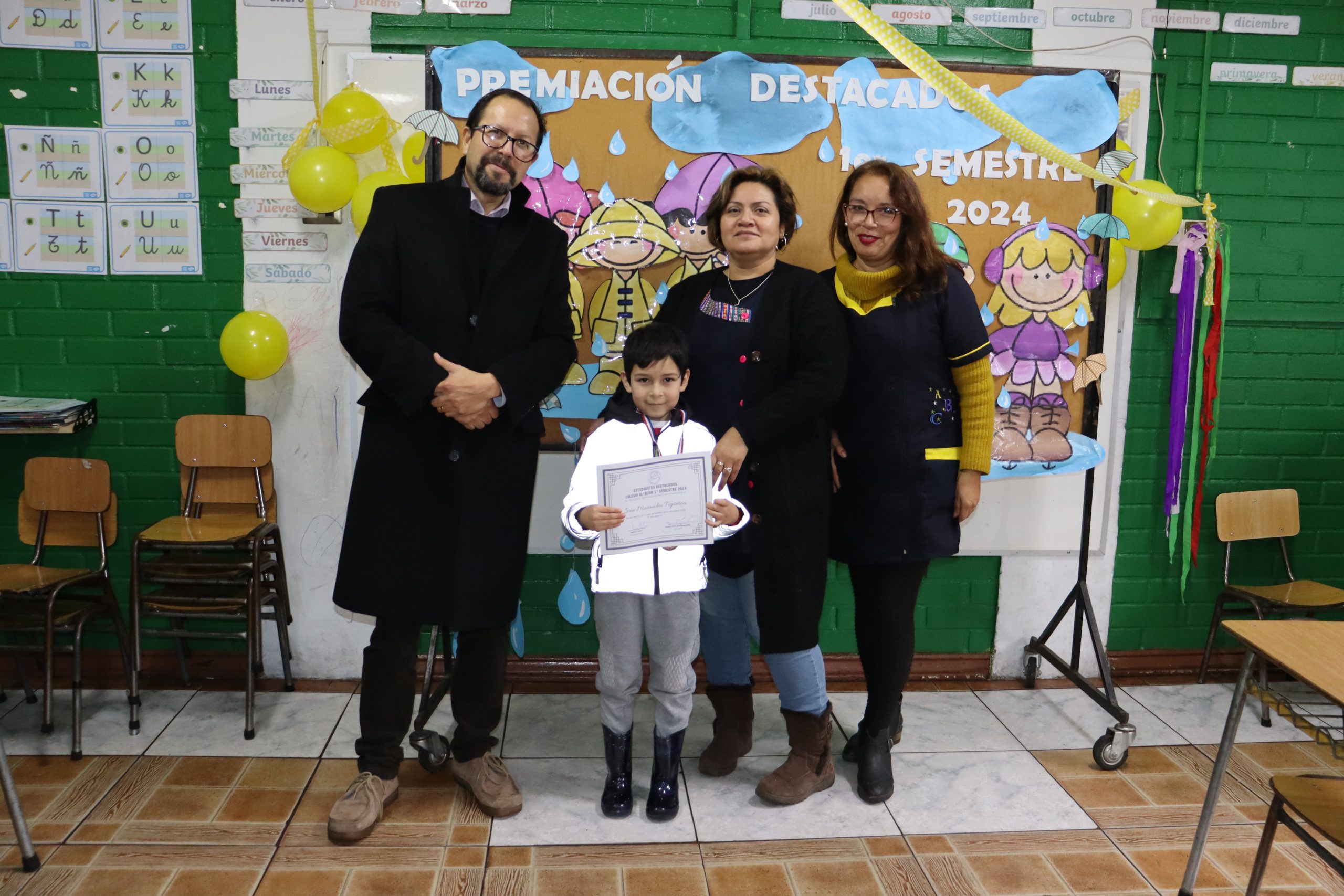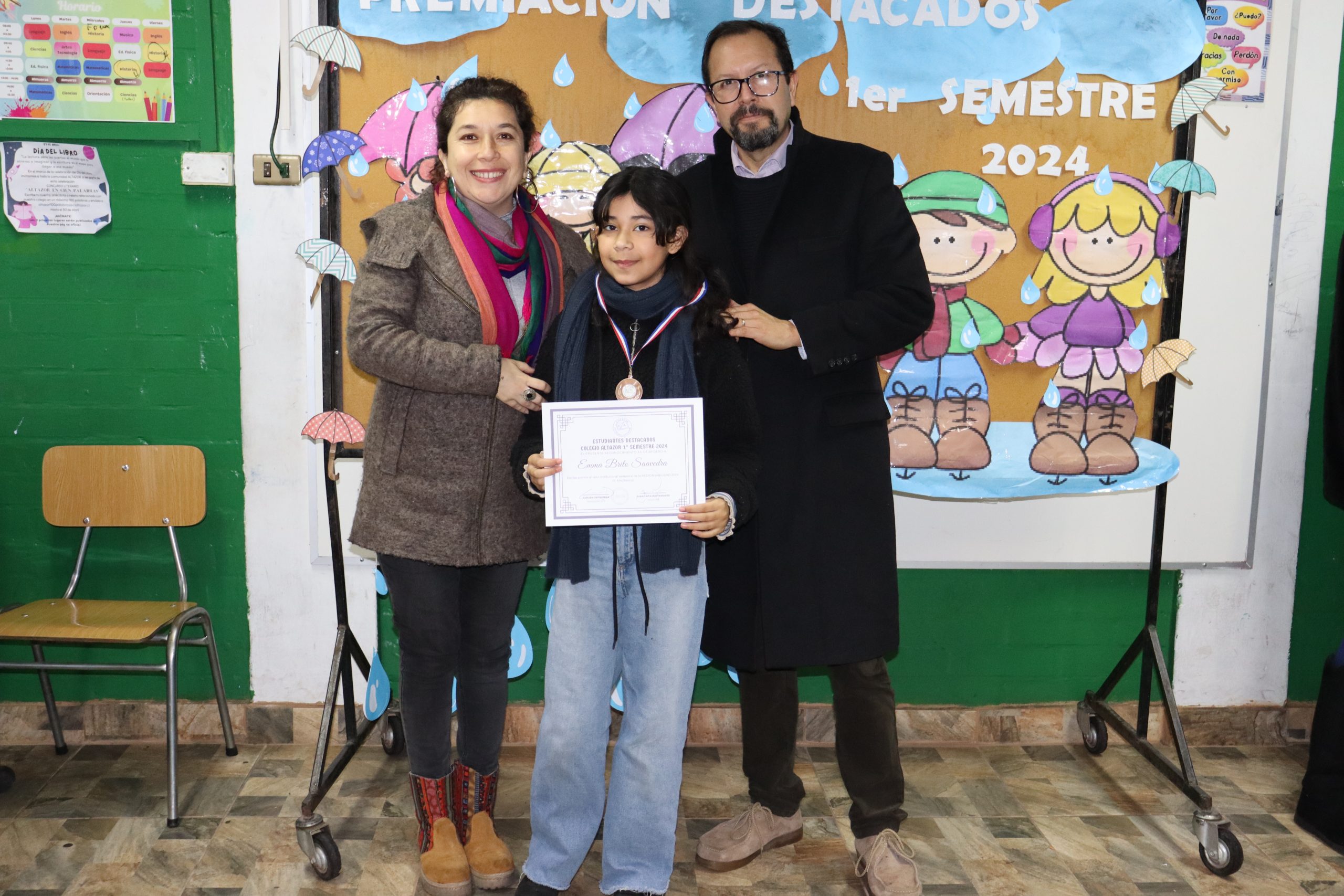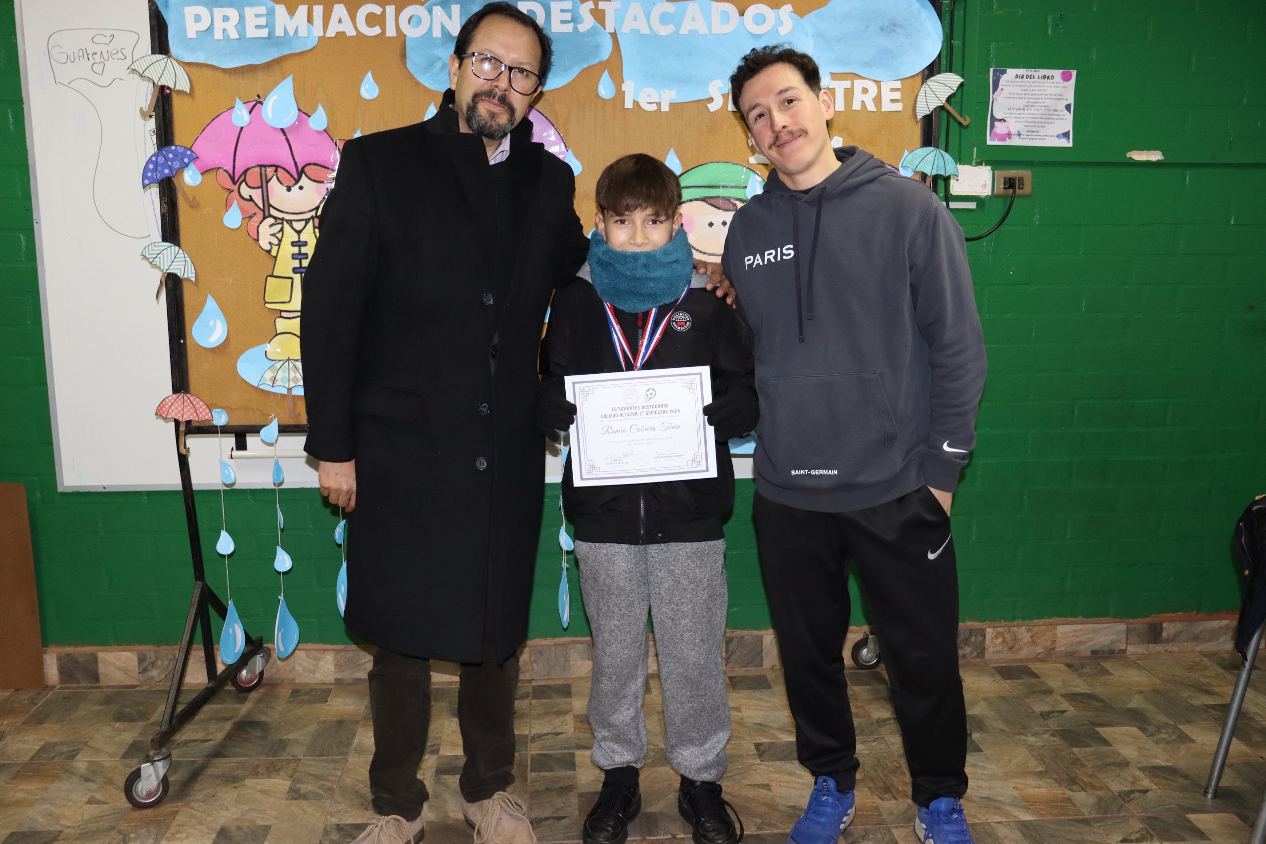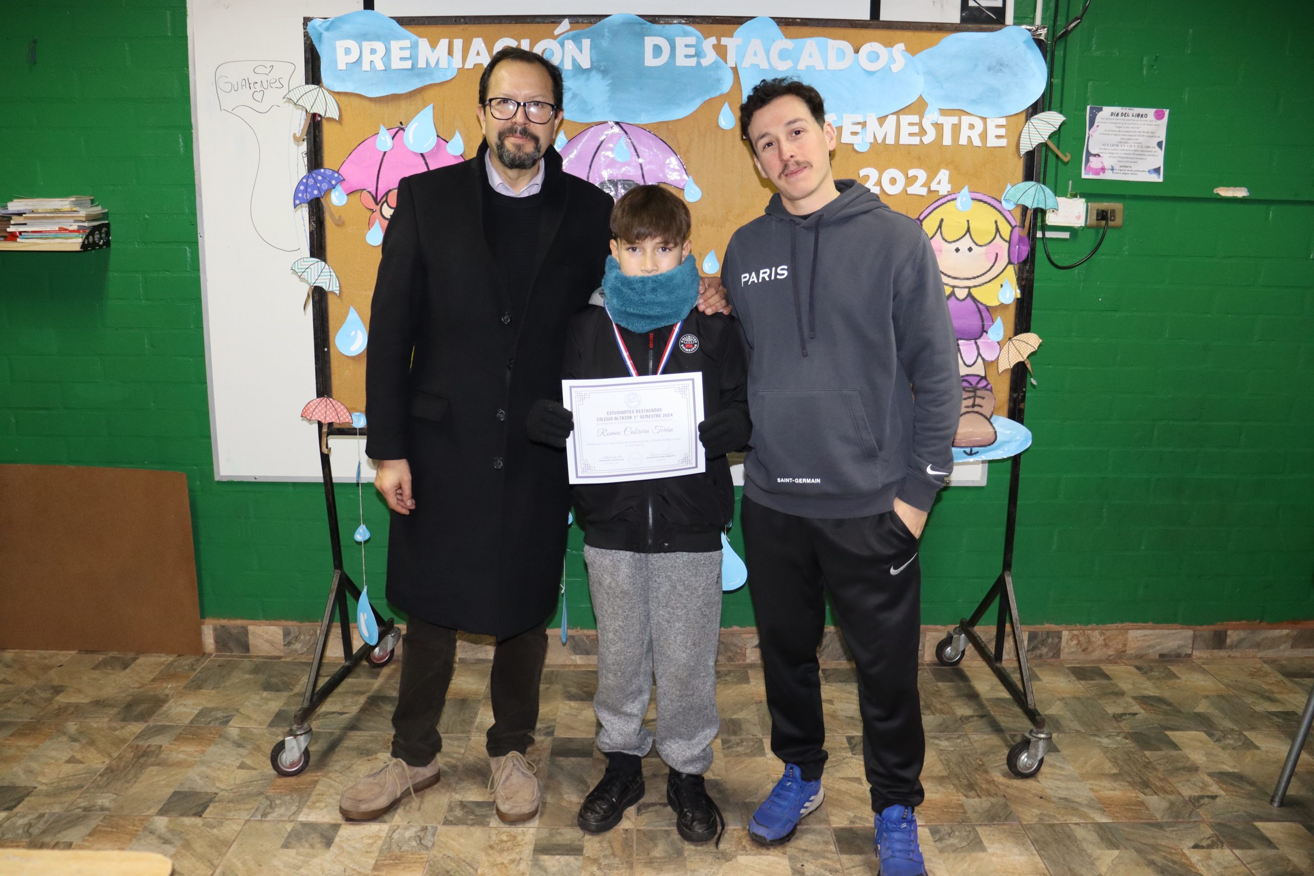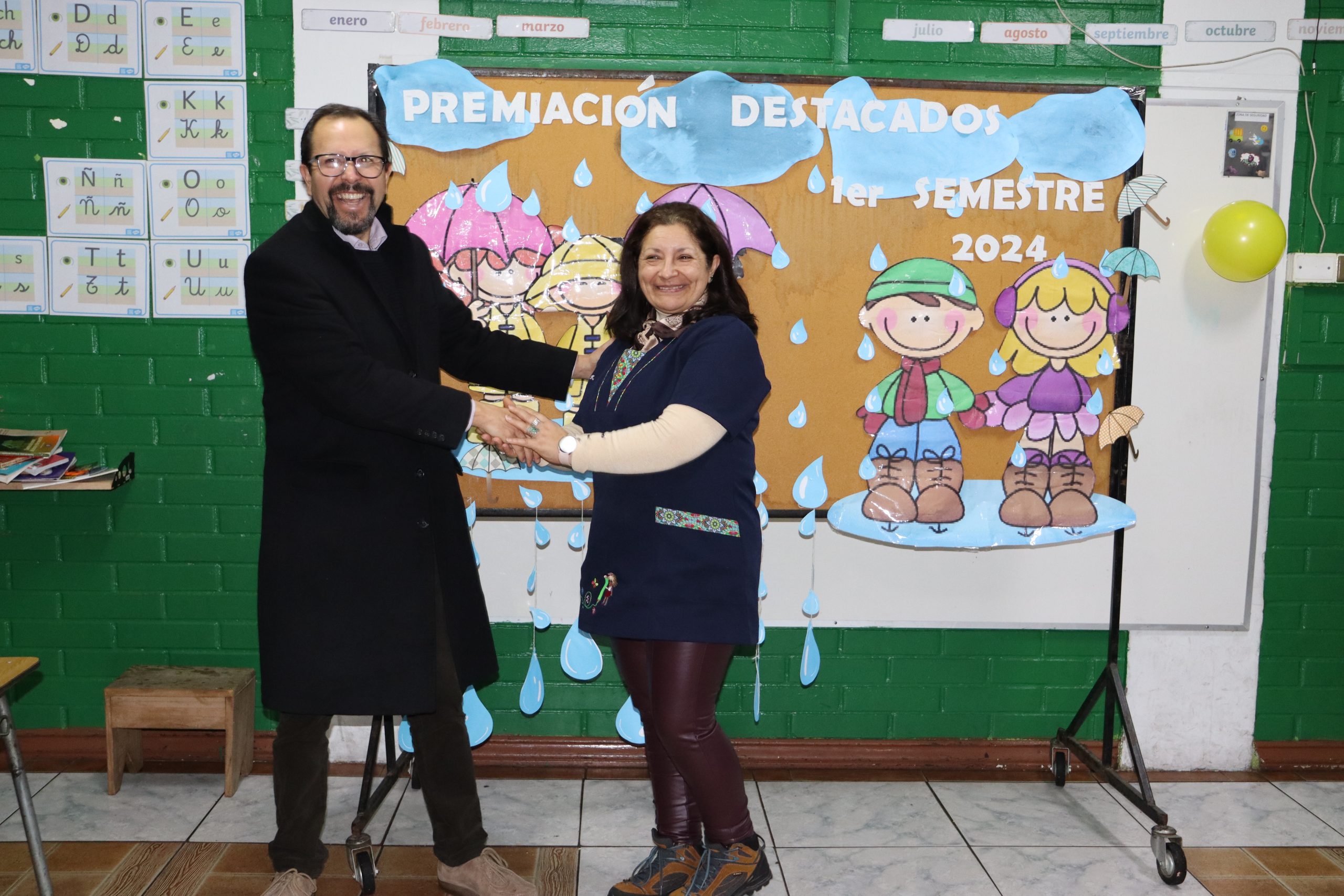 «La lluvia y el frío no fueron impedimento para reconocer a nuestros estudiantes más valiosos, con el ingenio y trabajo de nuestros equipos de aula logramos llevar un mini escenario a las salas de clases y visitar a cada uno de los cursos para realizar la entrega de medallas y diplomas a nuestros estudiantes destacados.