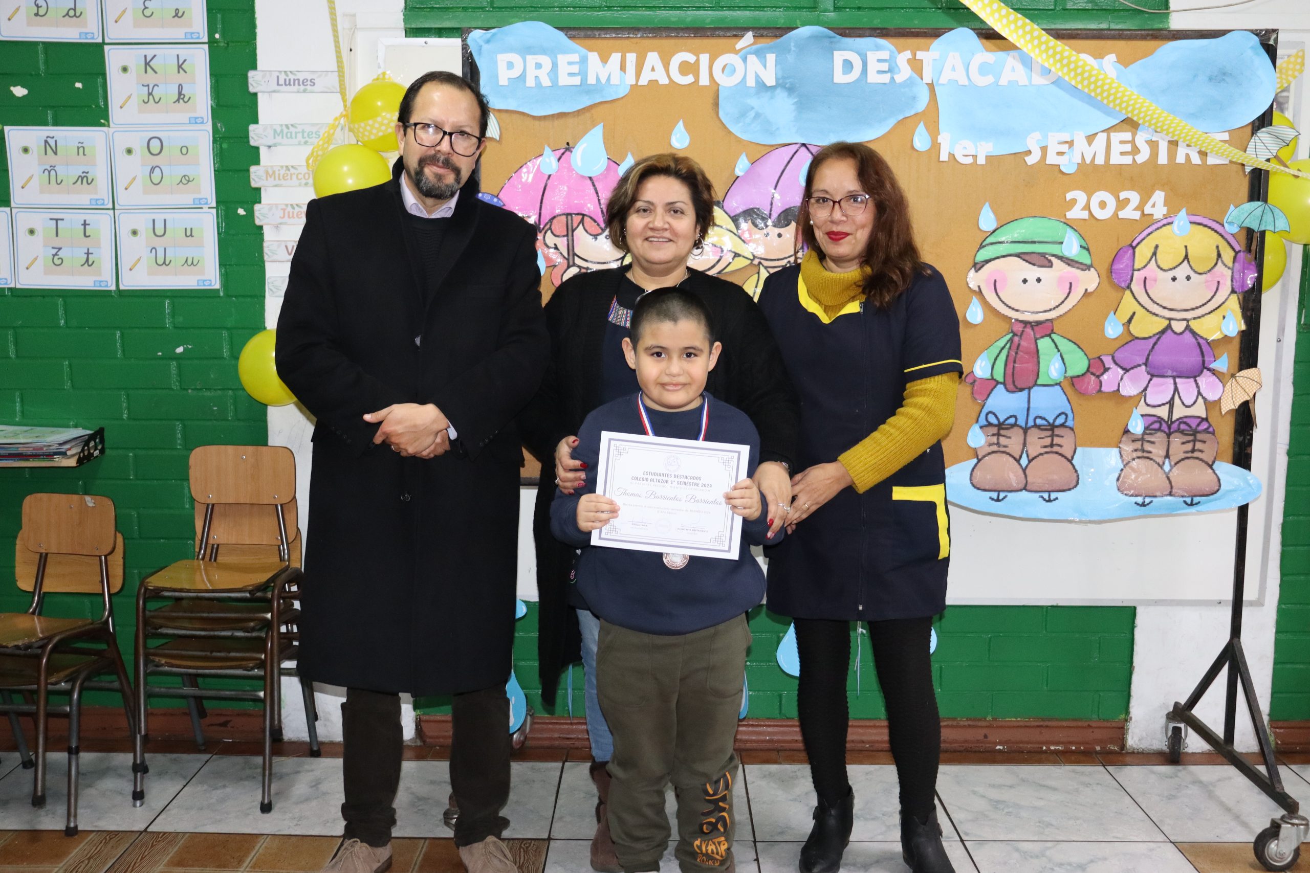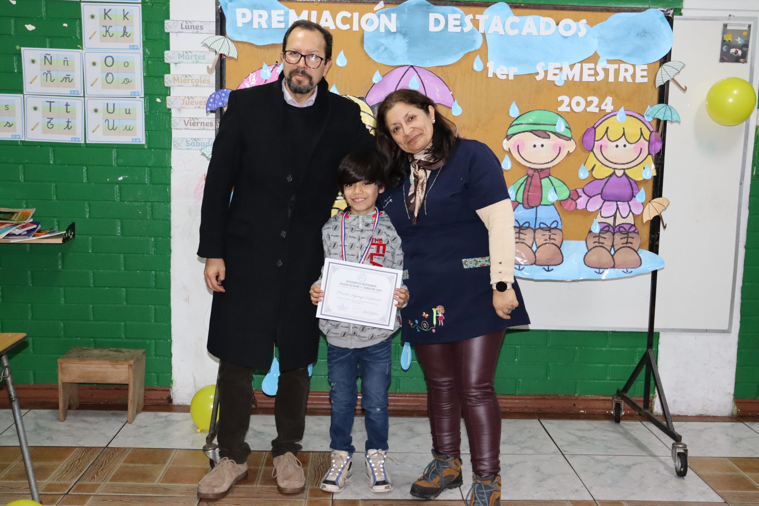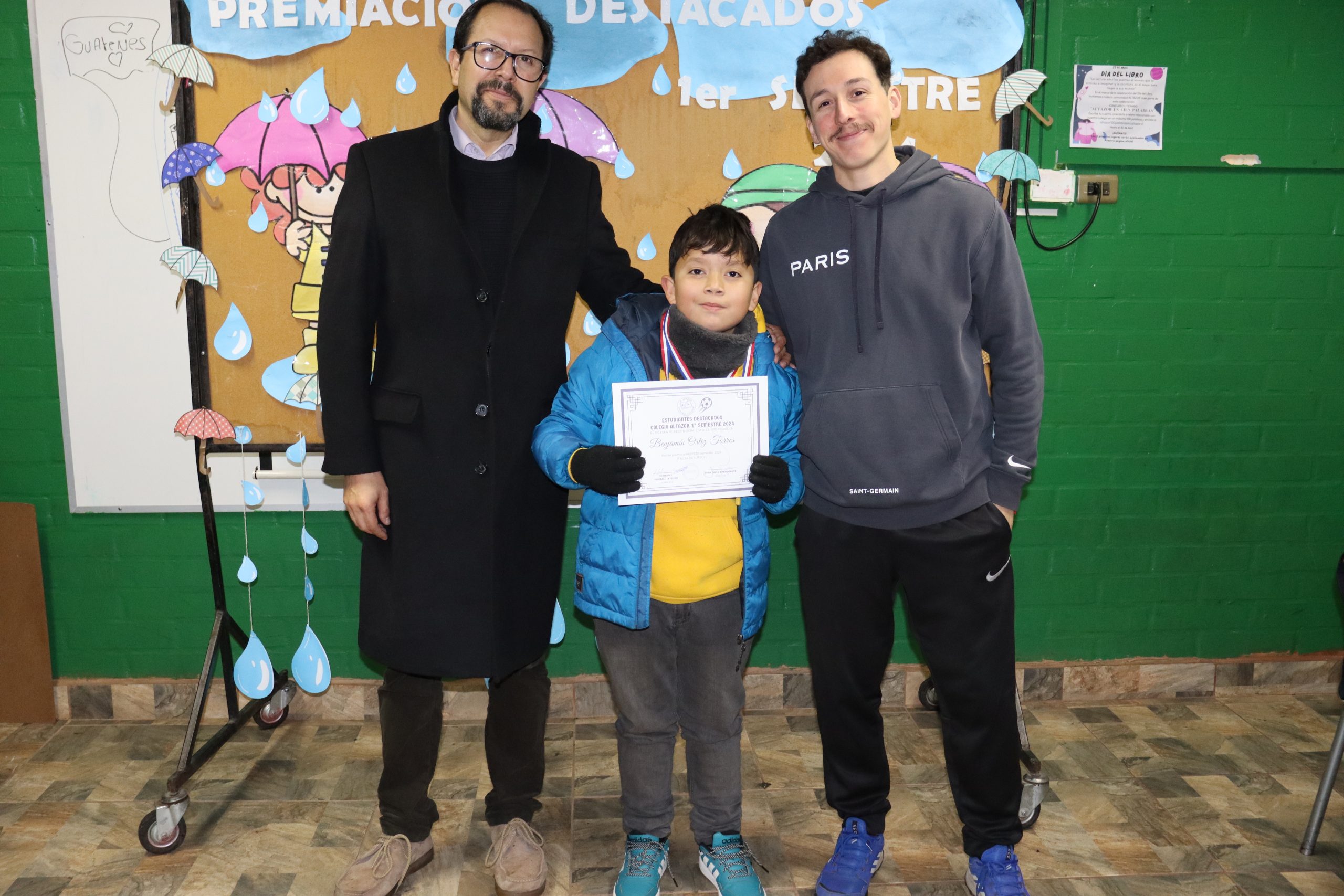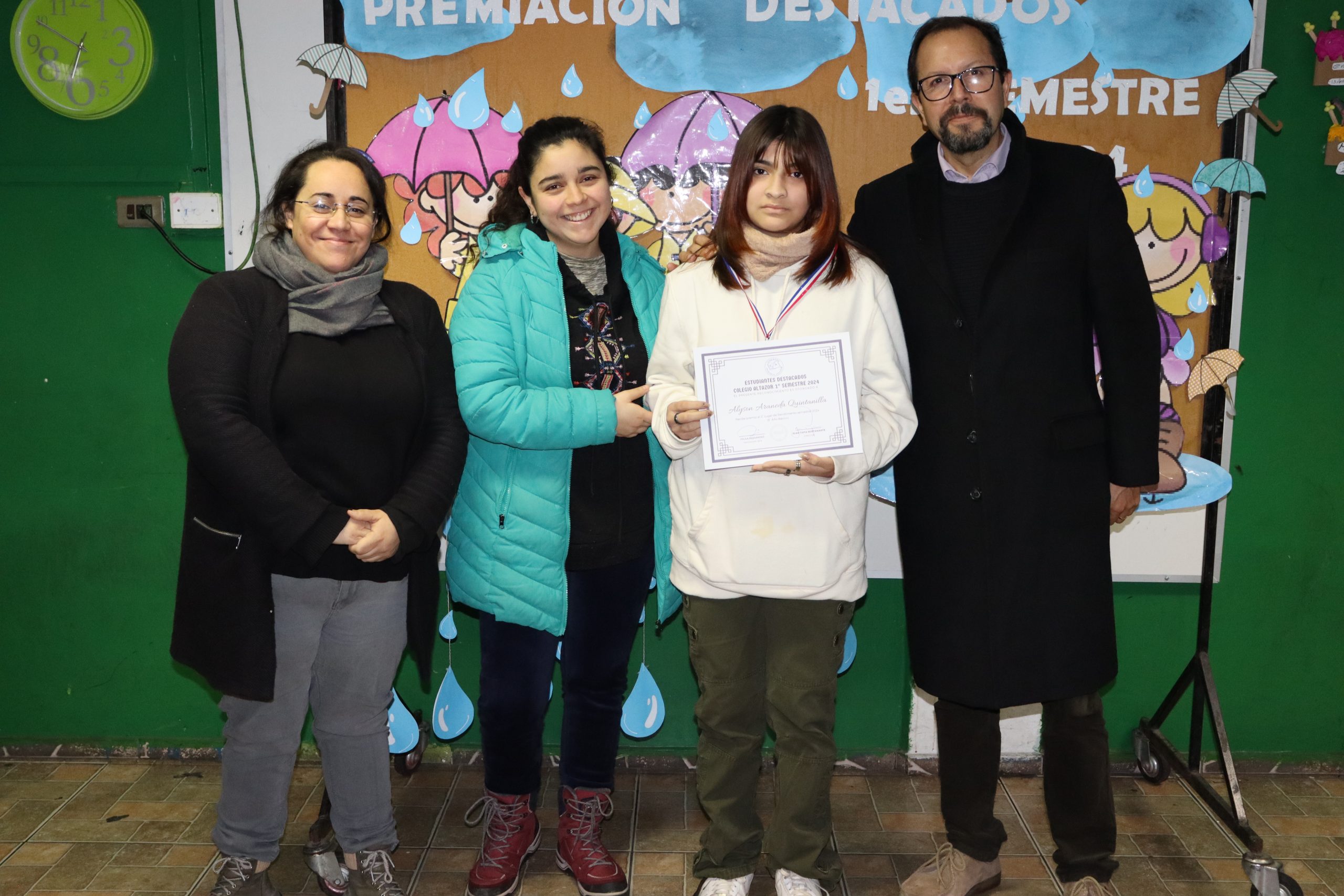 «La lluvia y el frío no fueron impedimento para reconocer a nuestros estudiantes más valiosos, con el ingenio y trabajo de nuestros equipos de aula logramos llevar un mini escenario a las salas de clases y visitar a cada uno de los cursos para realizar la entrega de medallas y diplomas a nuestros estudiantes destacados.