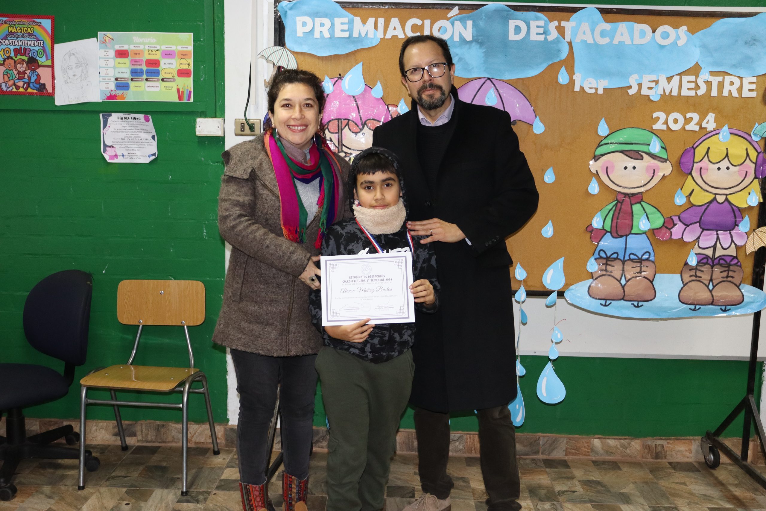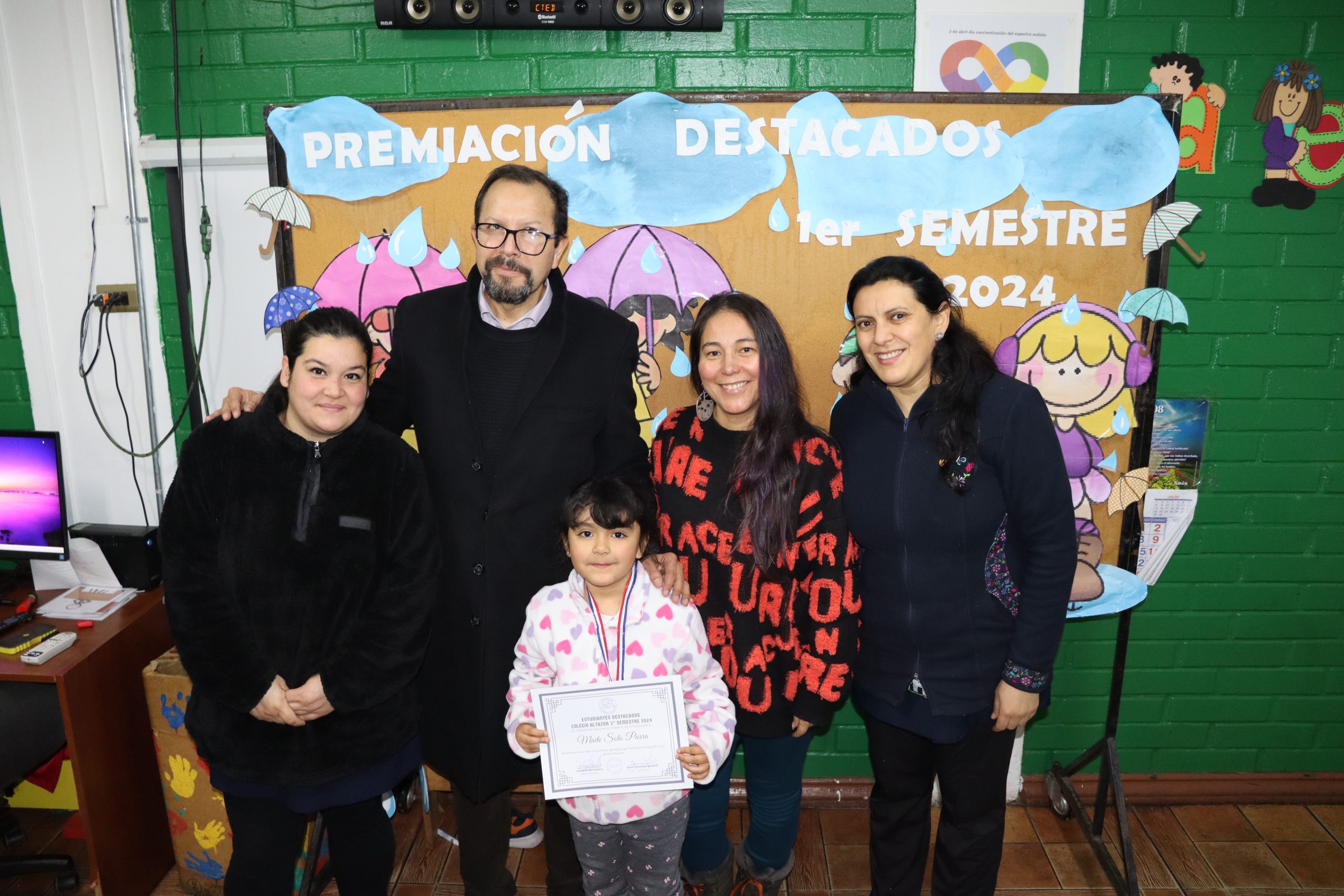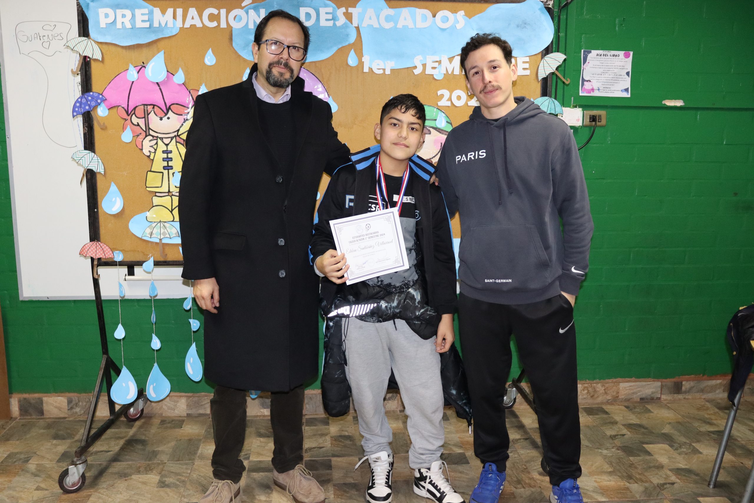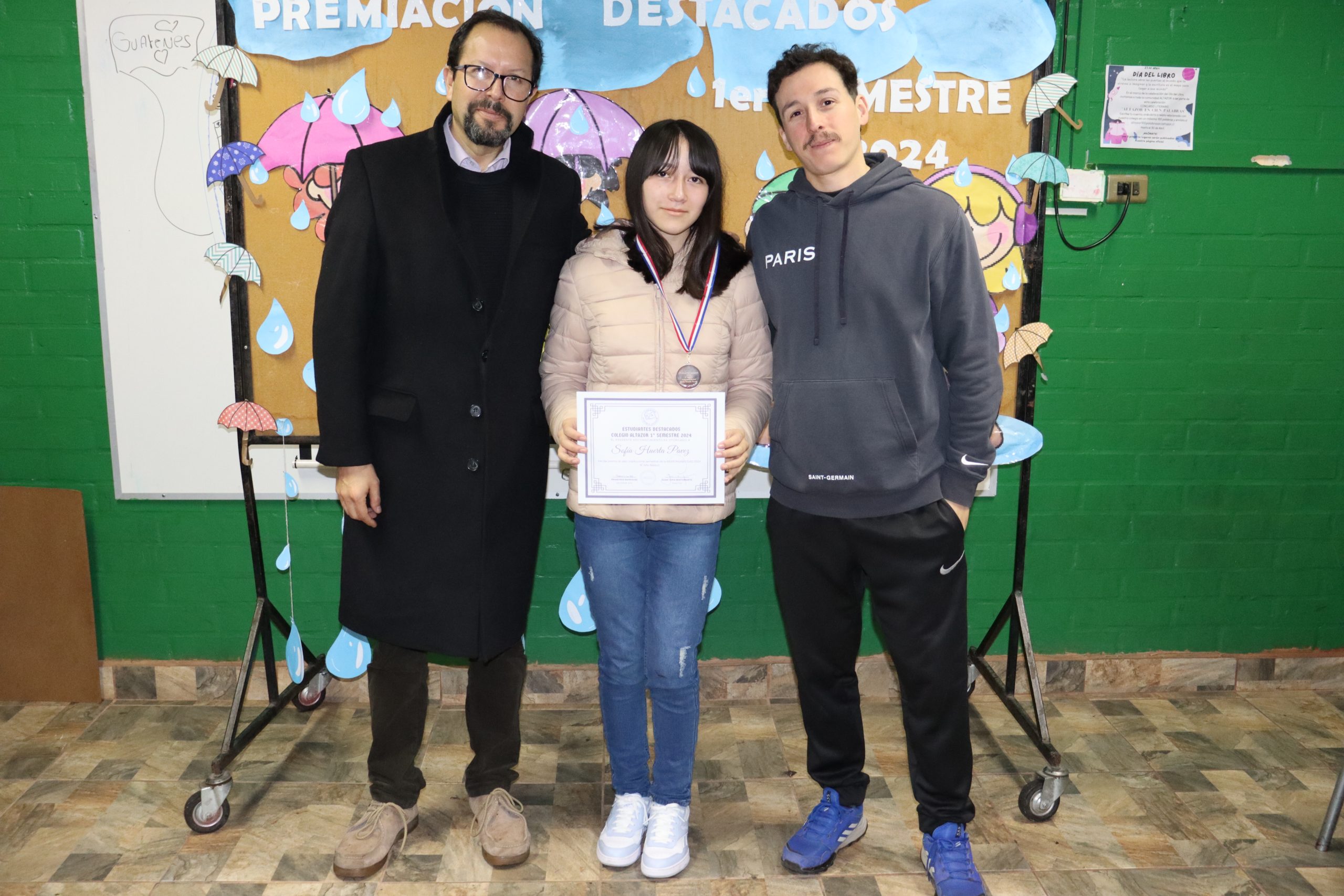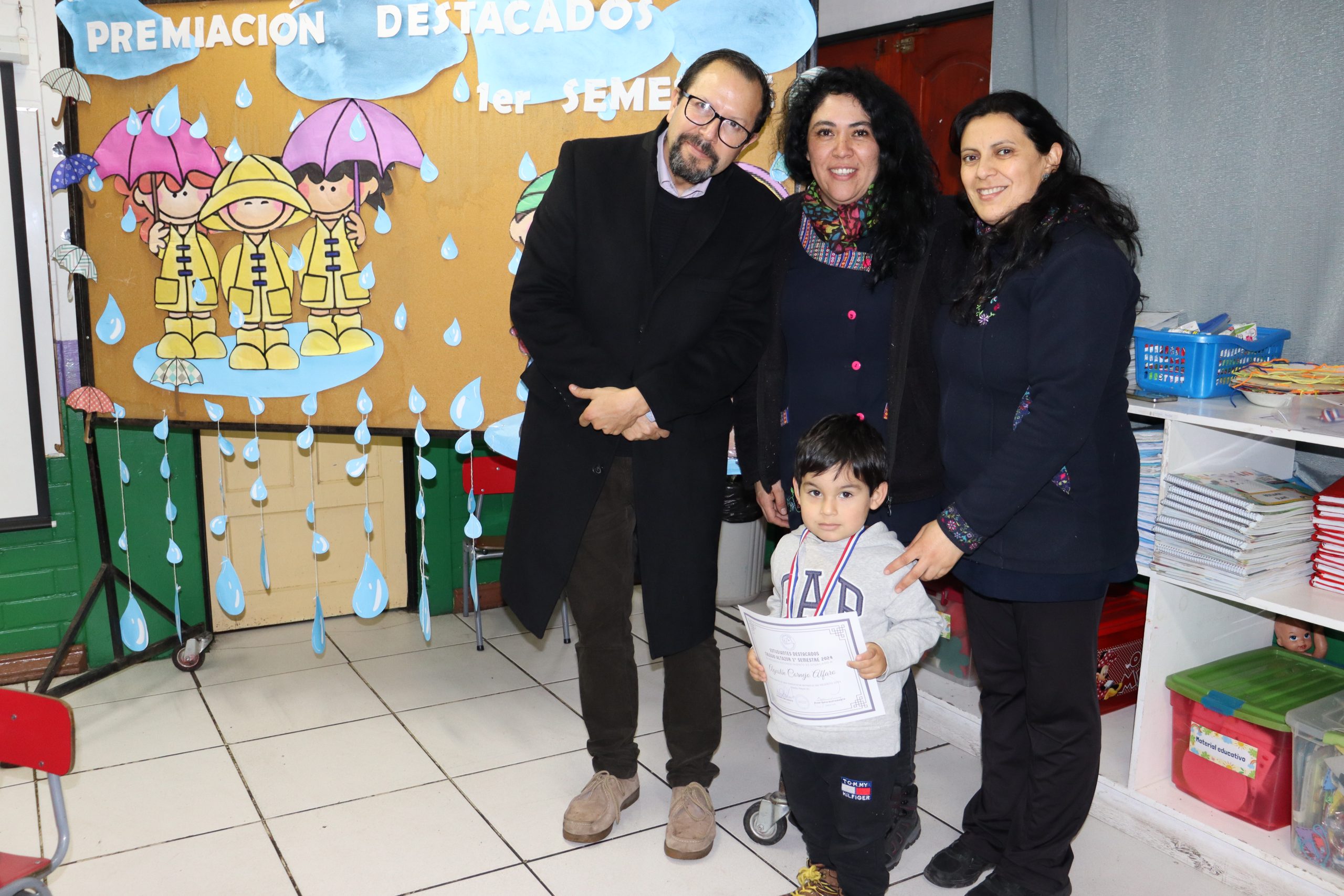 «La lluvia y el frío no fueron impedimento para reconocer a nuestros estudiantes más valiosos, con el ingenio y trabajo de nuestros equipos de aula logramos llevar un mini escenario a las salas de clases y visitar a cada uno de los cursos para realizar la entrega de medallas y diplomas a nuestros estudiantes destacados.