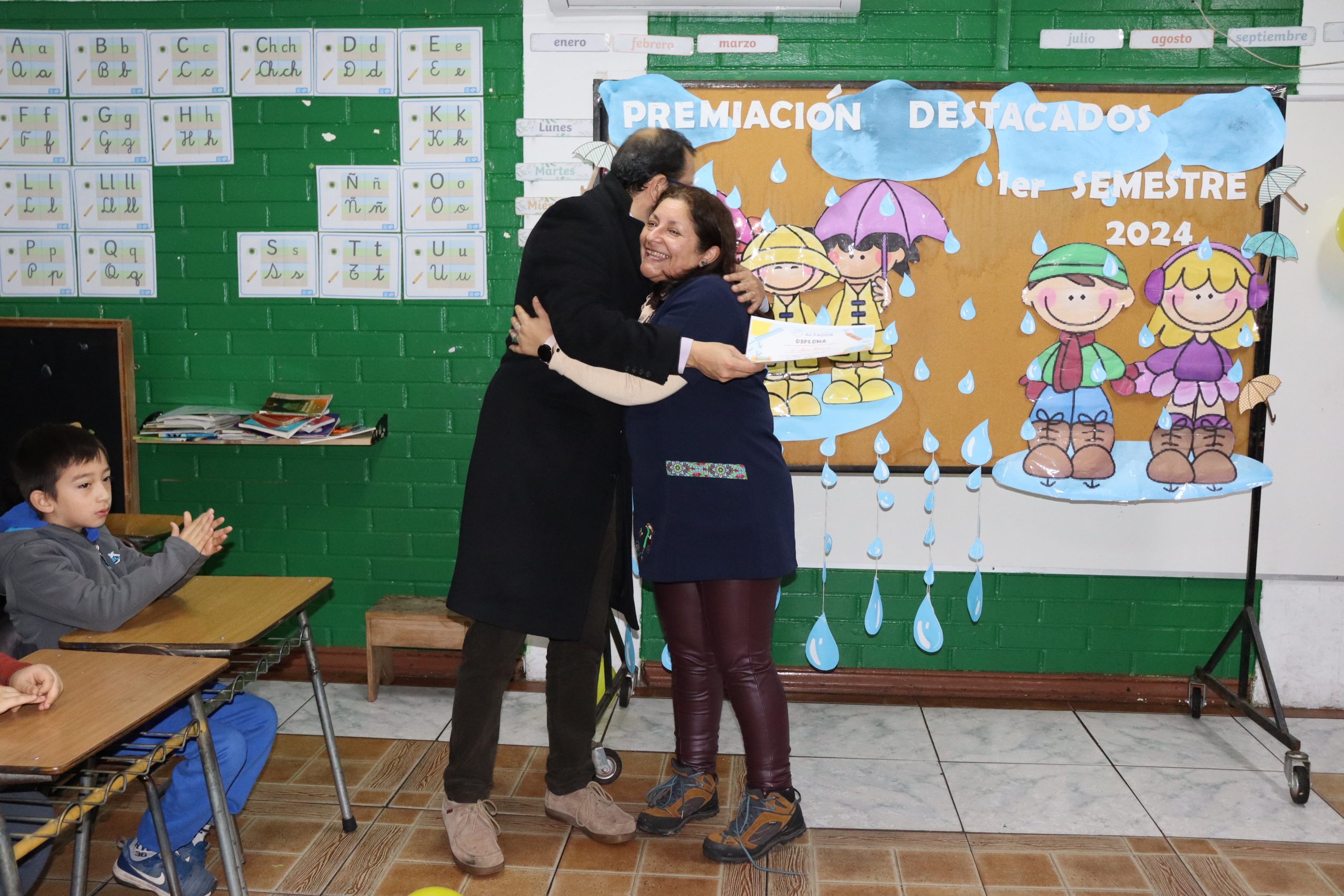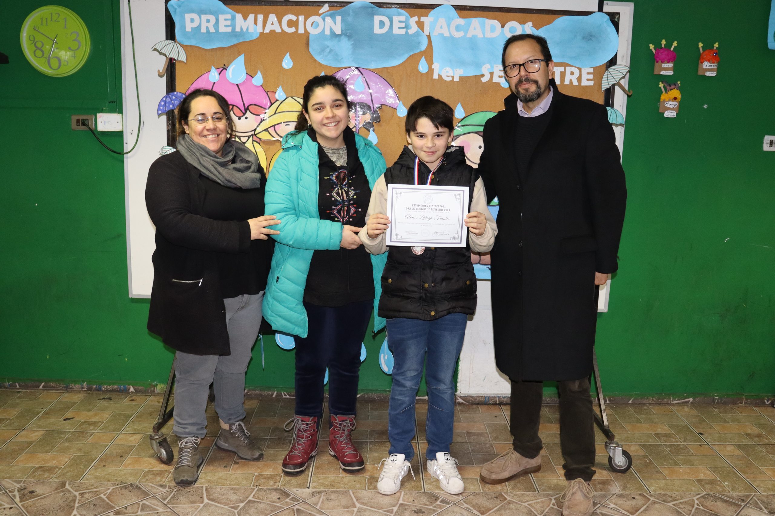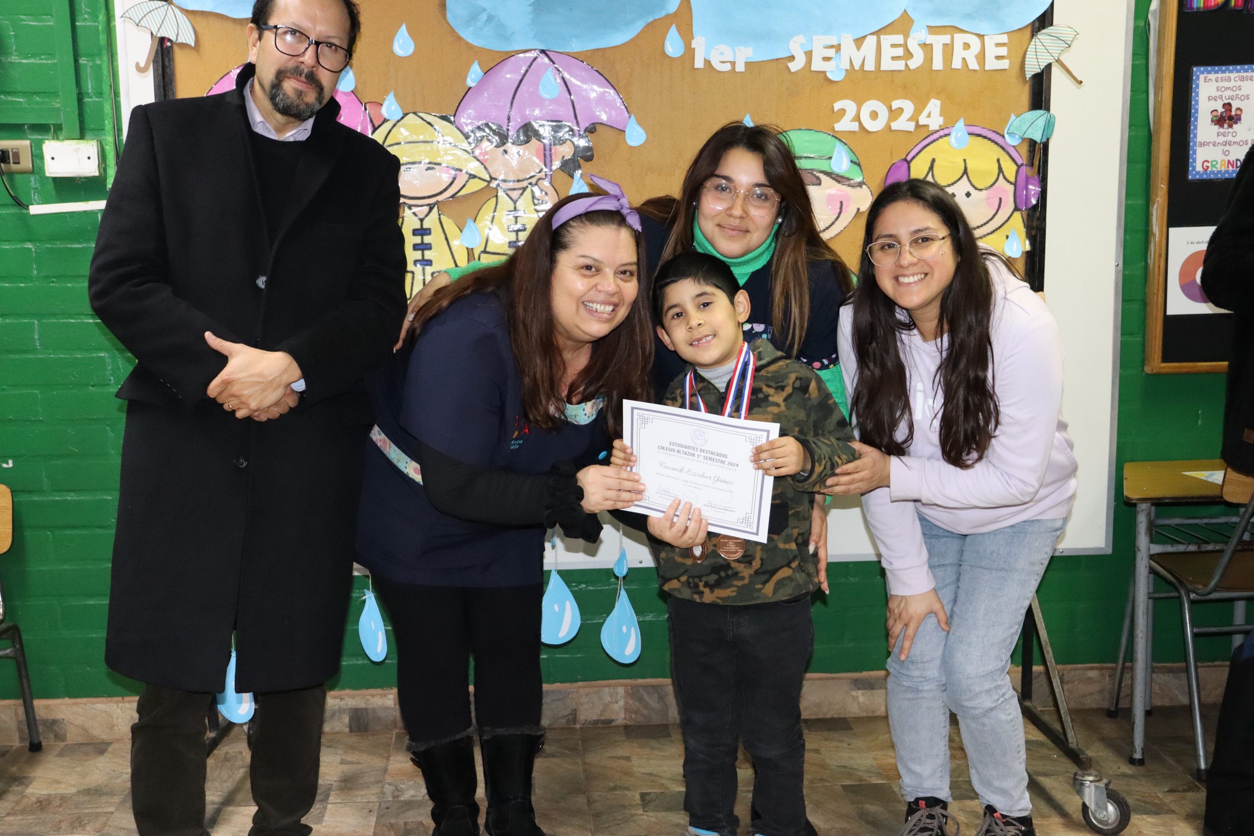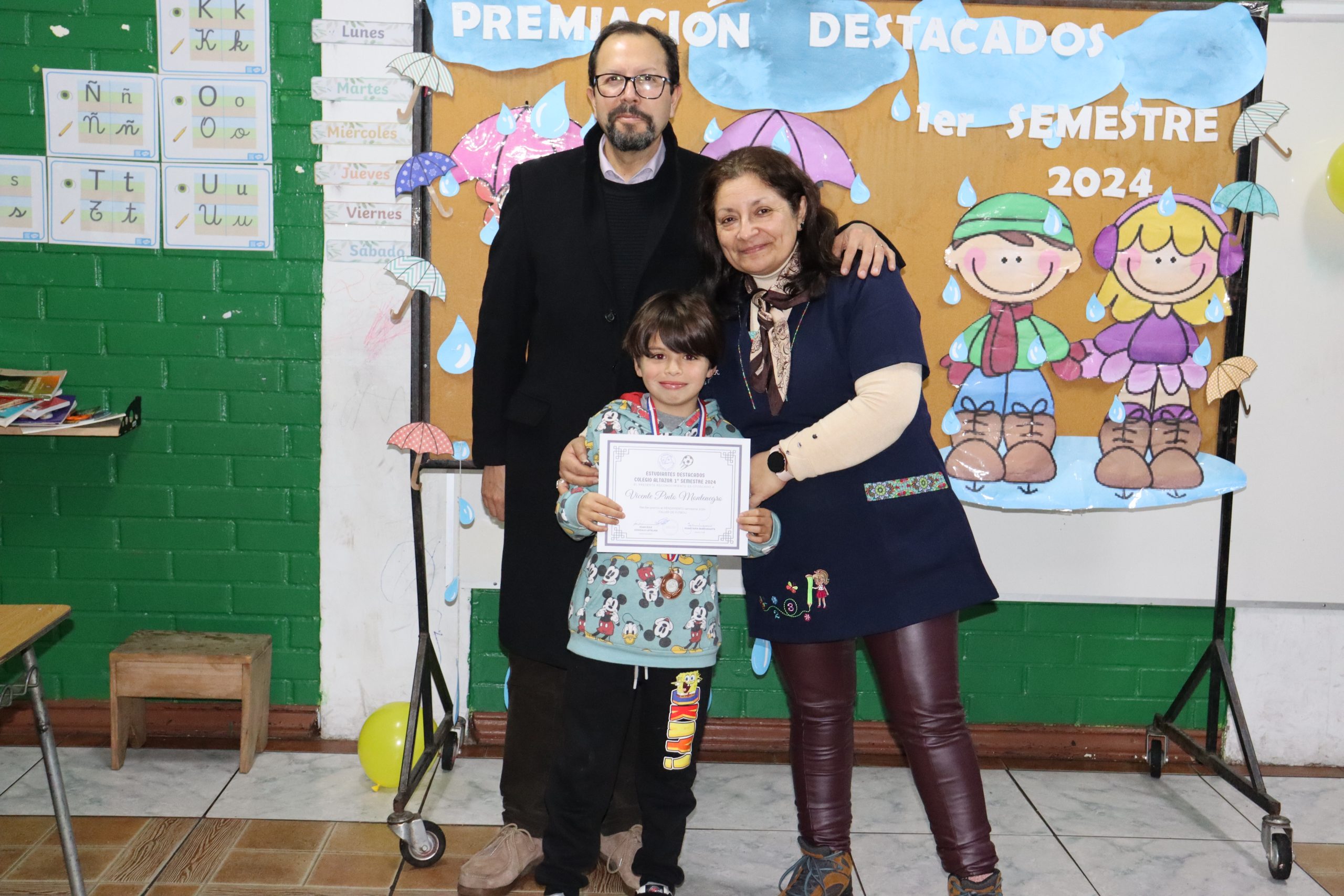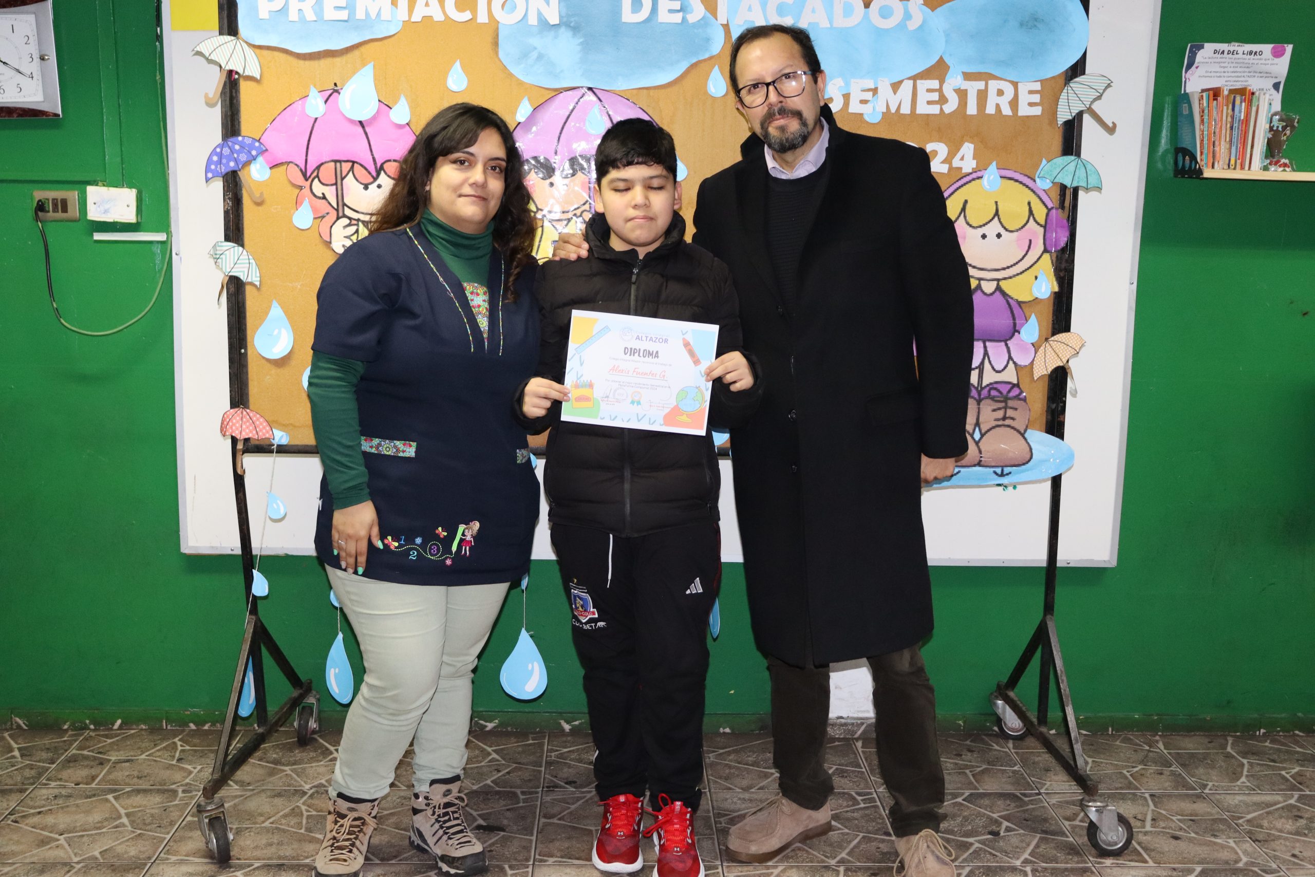 «La lluvia y el frío no fueron impedimento para reconocer a nuestros estudiantes más valiosos, con el ingenio y trabajo de nuestros equipos de aula logramos llevar un mini escenario a las salas de clases y visitar a cada uno de los cursos para realizar la entrega de medallas y diplomas a nuestros estudiantes destacados.