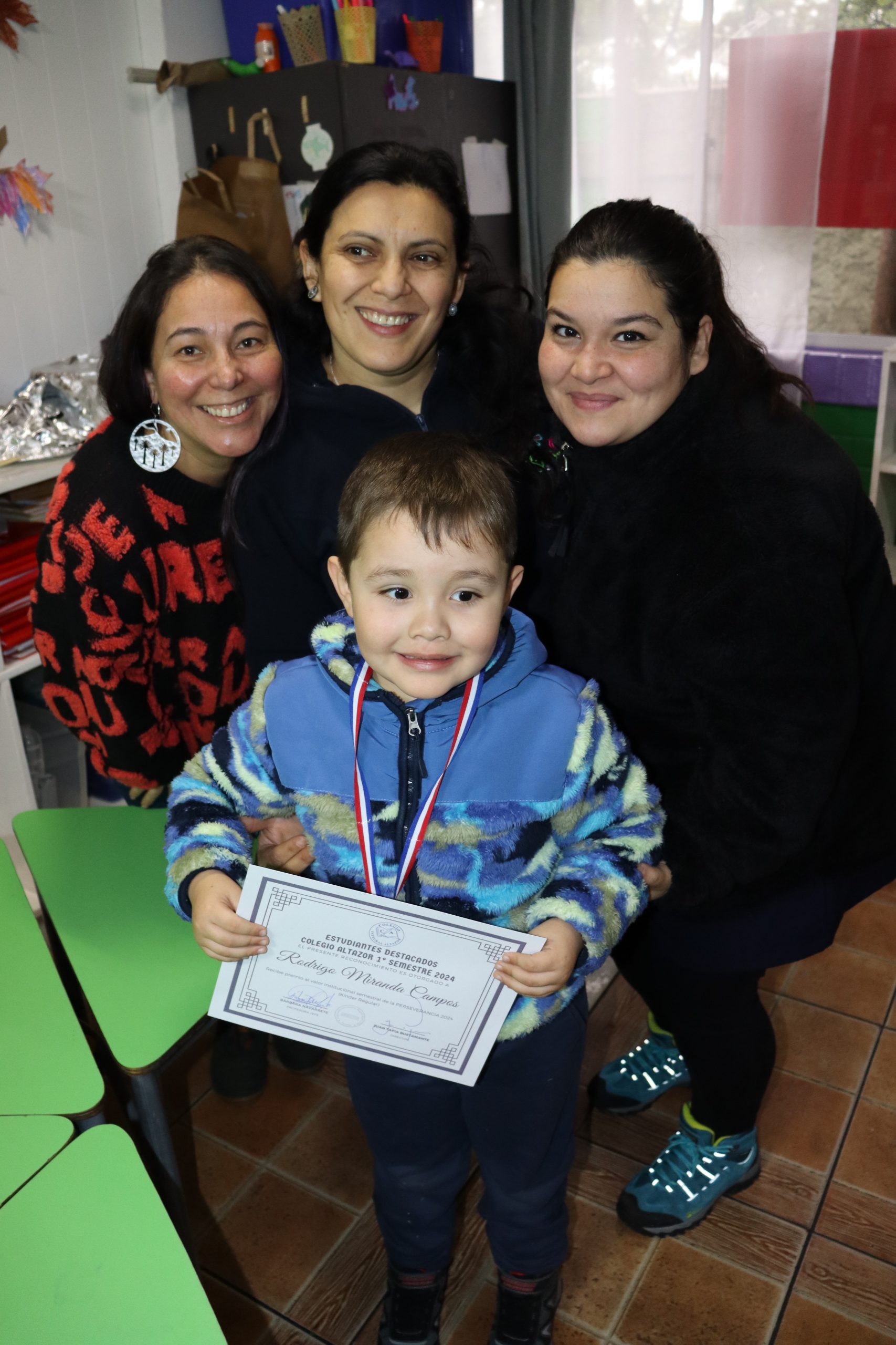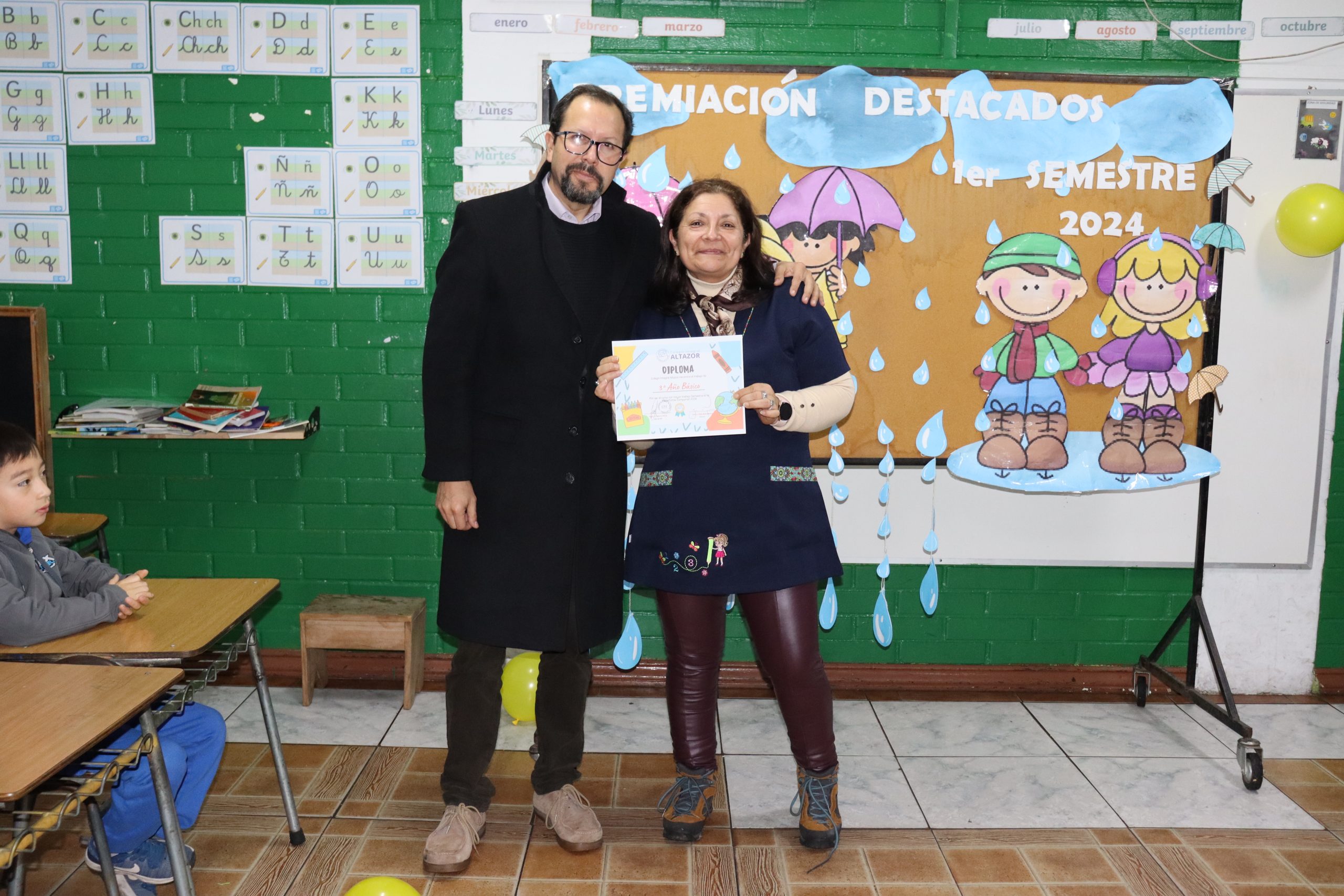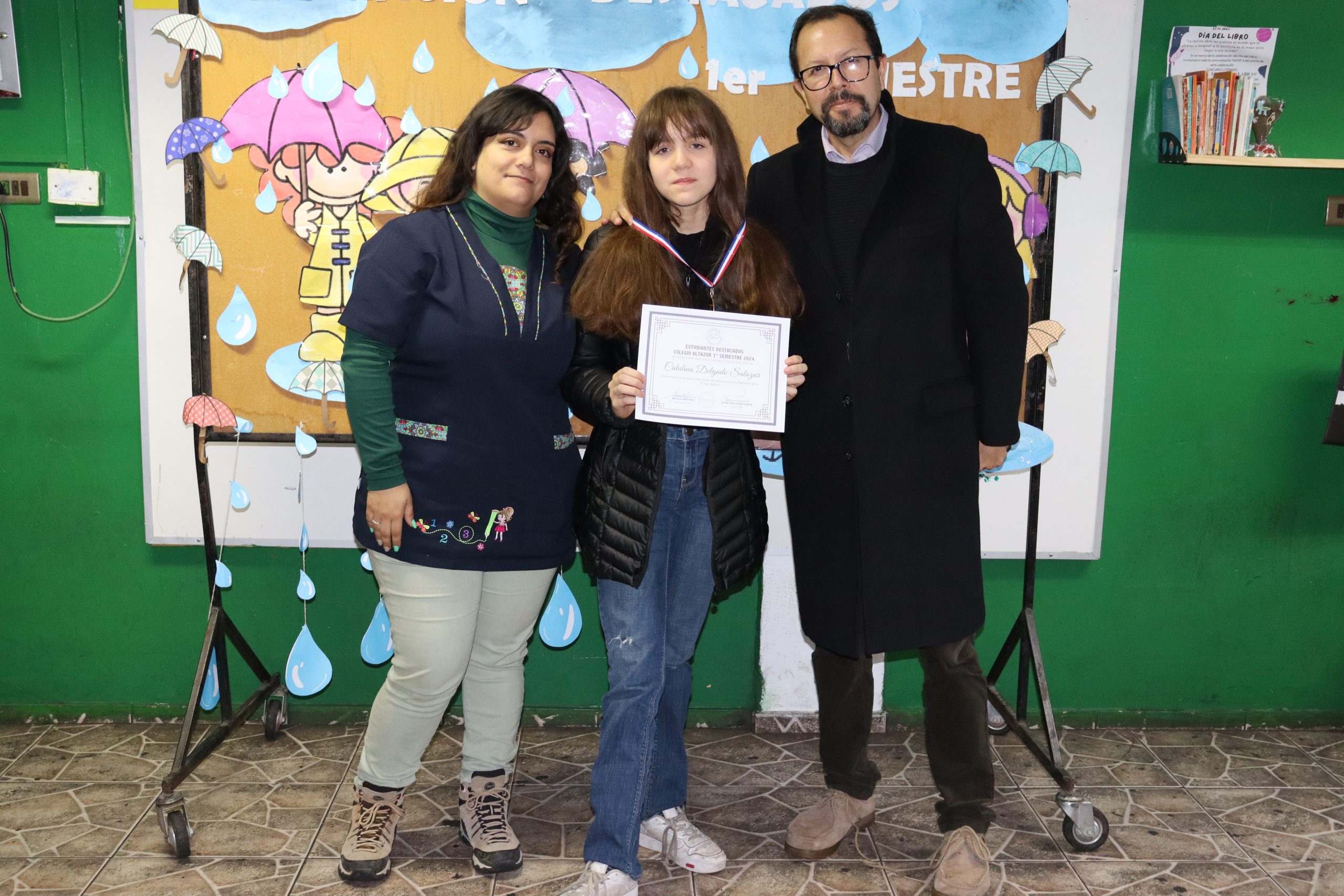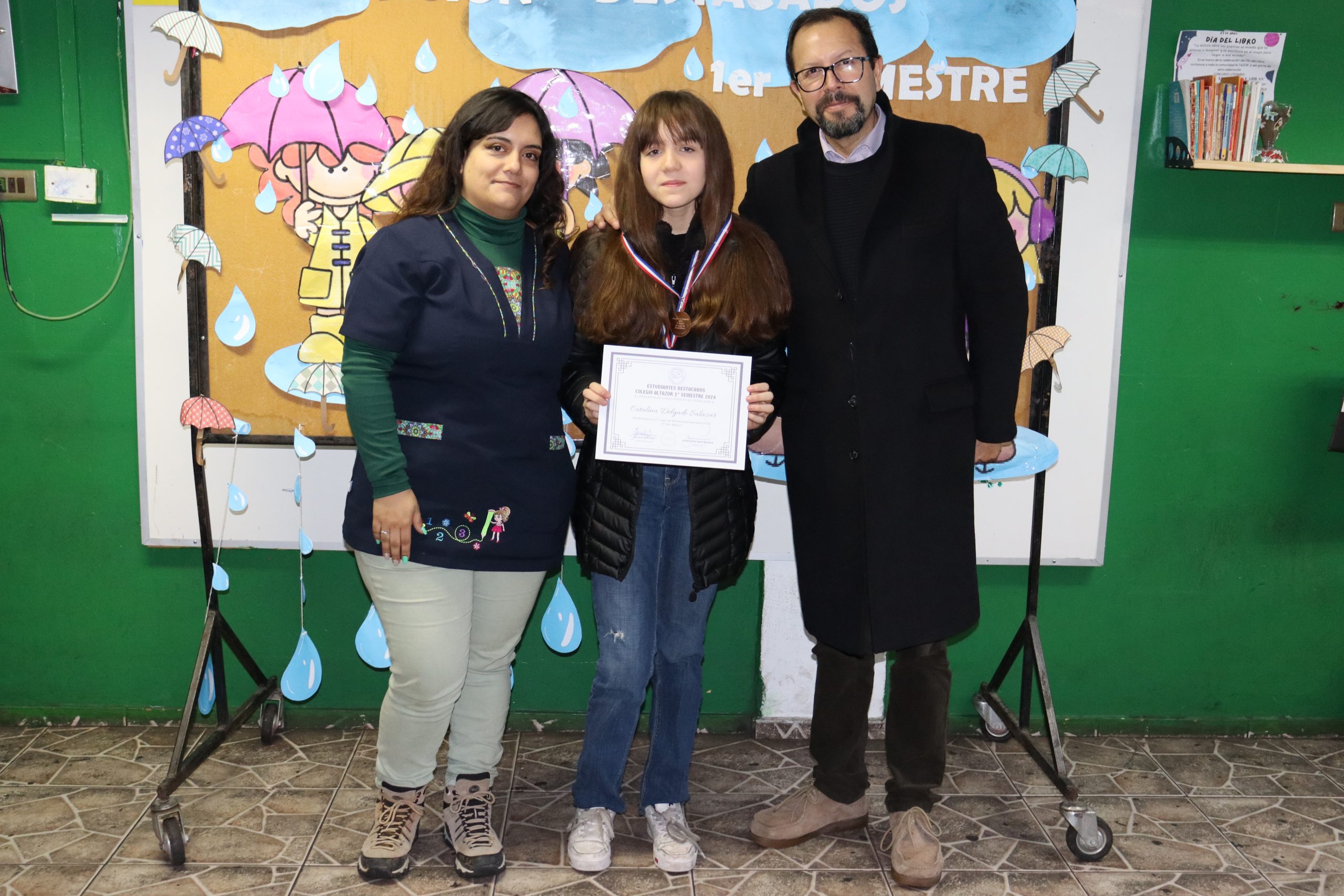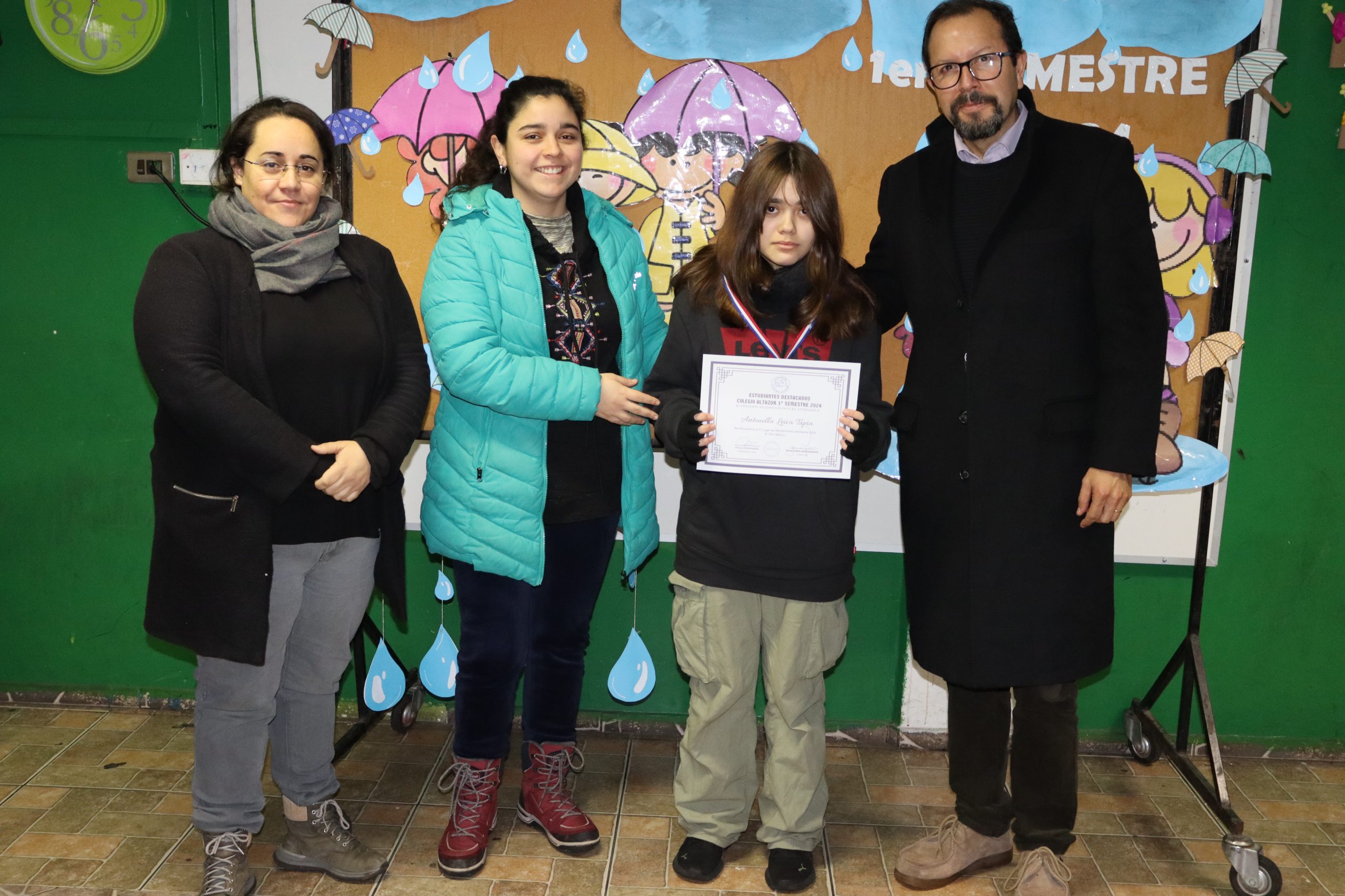 «La lluvia y el frío no fueron impedimento para reconocer a nuestros estudiantes más valiosos, con el ingenio y trabajo de nuestros equipos de aula logramos llevar un mini escenario a las salas de clases y visitar a cada uno de los cursos para realizar la entrega de medallas y diplomas a nuestros estudiantes destacados.