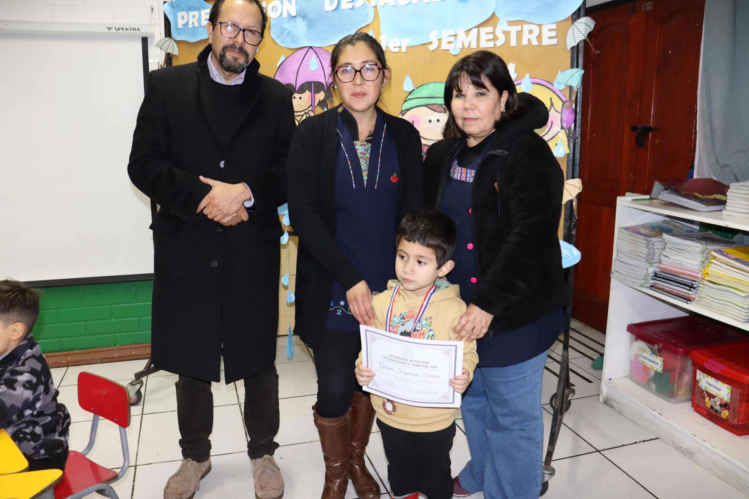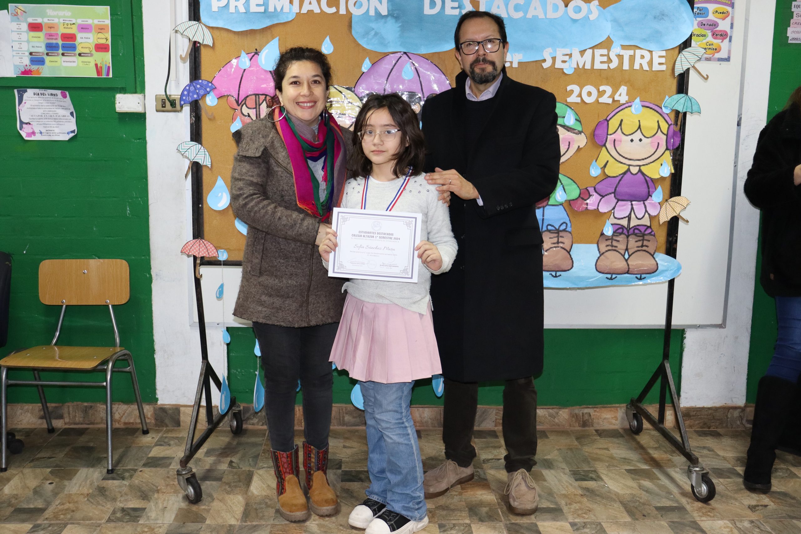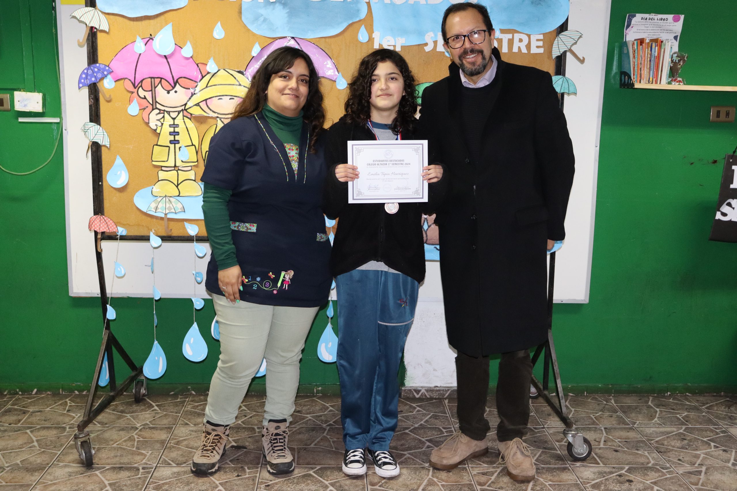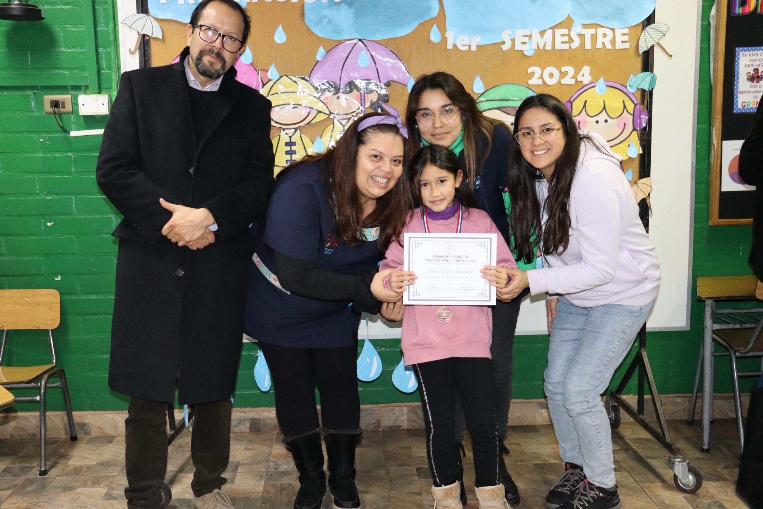 «La lluvia y el frío no fueron impedimento para reconocer a nuestros estudiantes más valiosos, con el ingenio y trabajo de nuestros equipos de aula logramos llevar un mini escenario a las salas de clases y visitar a cada uno de los cursos para realizar la entrega de medallas y diplomas a nuestros estudiantes destacados.