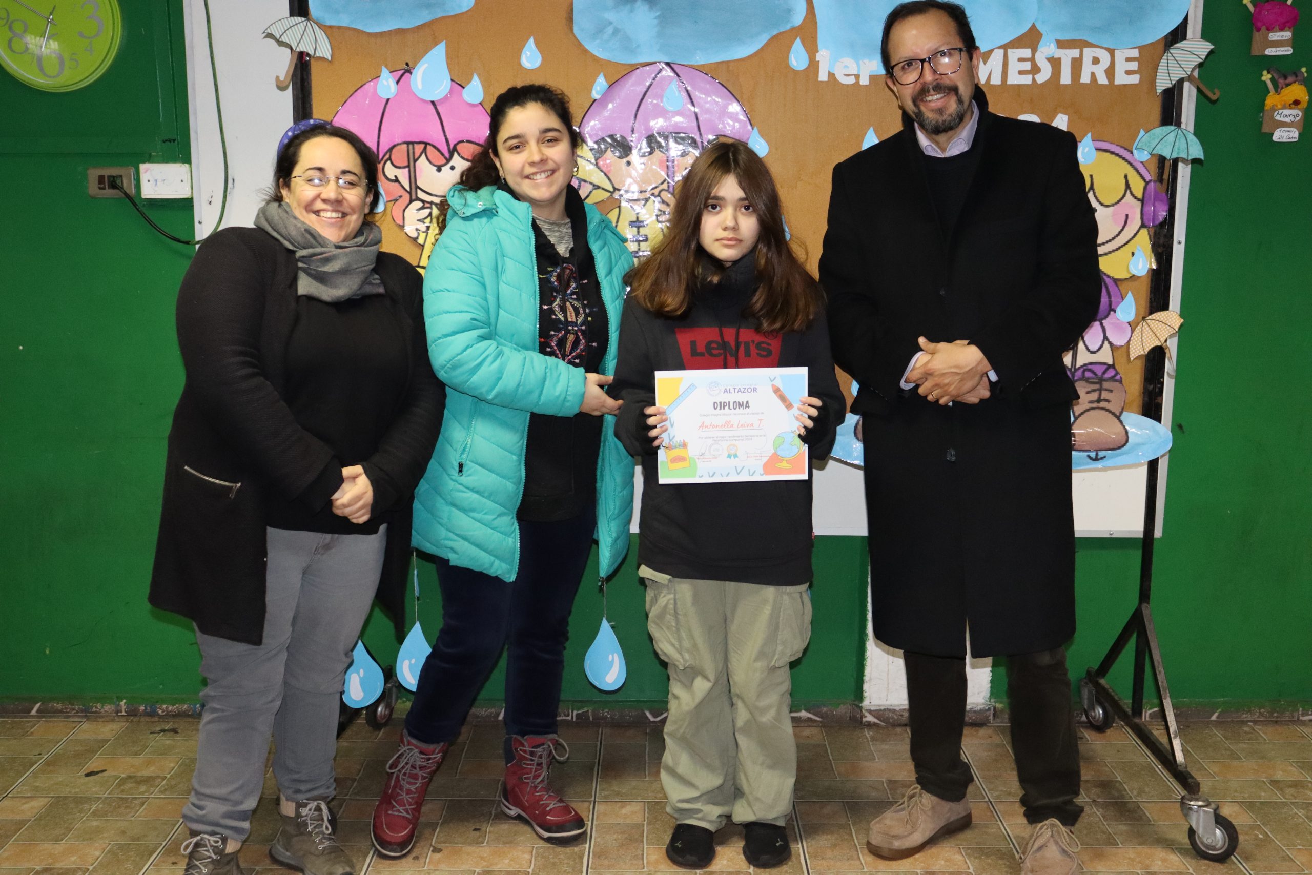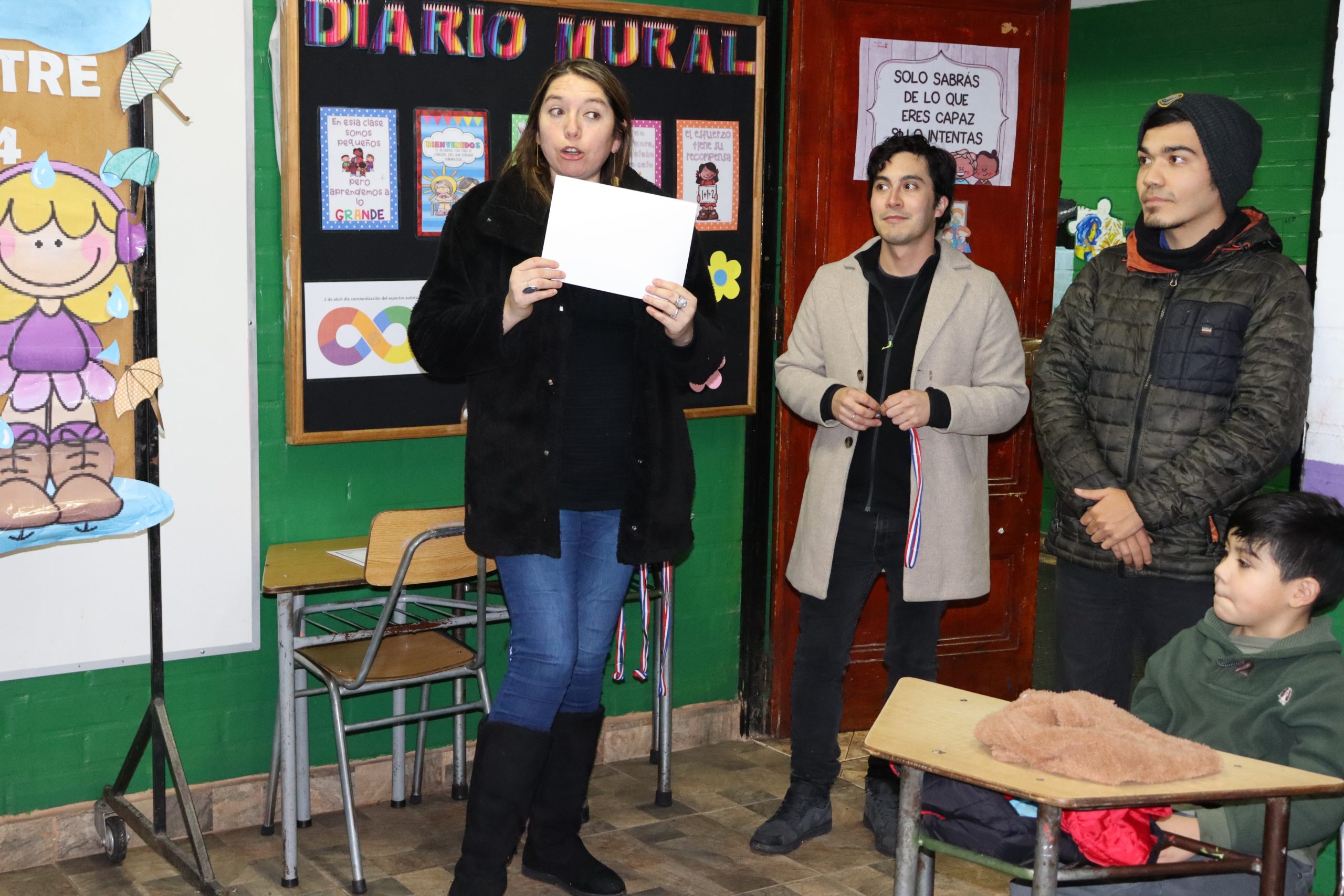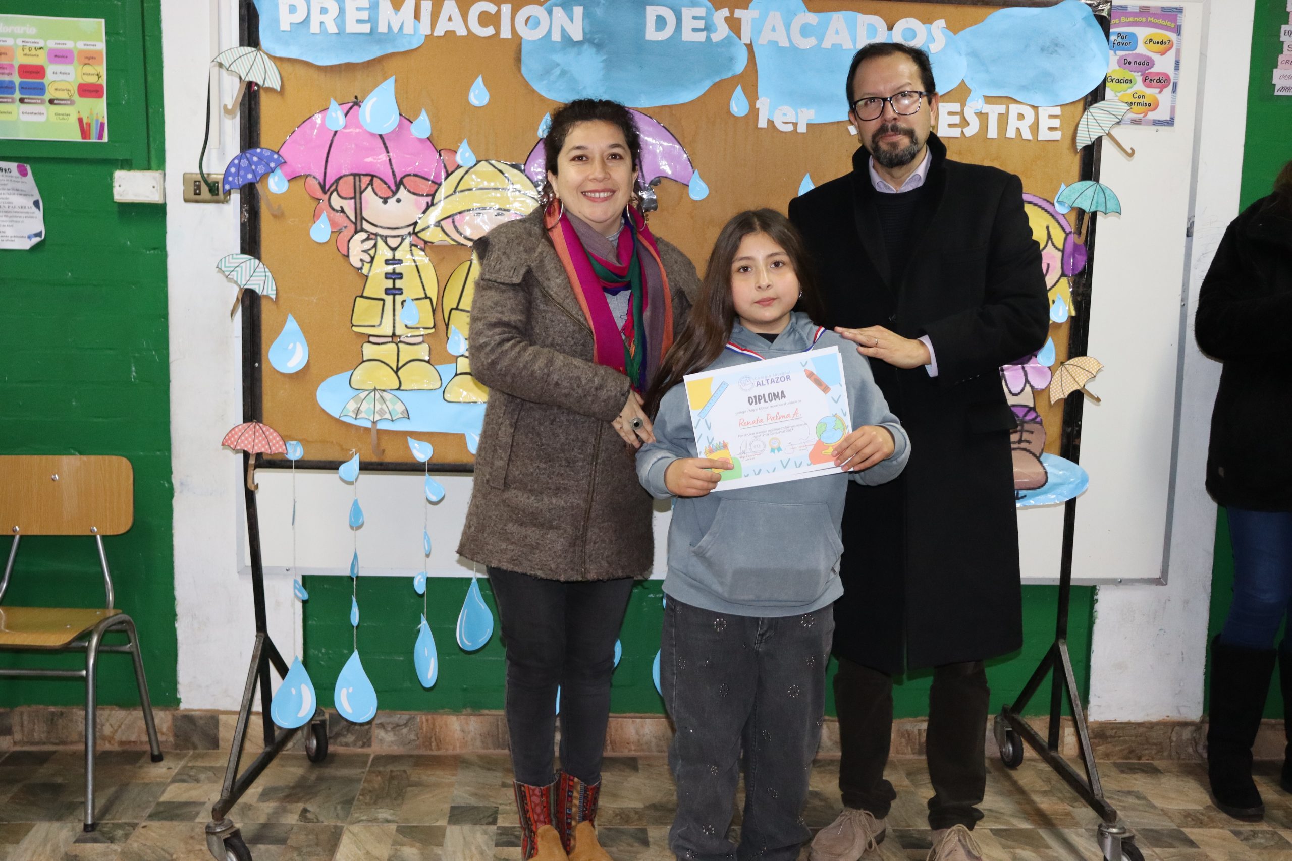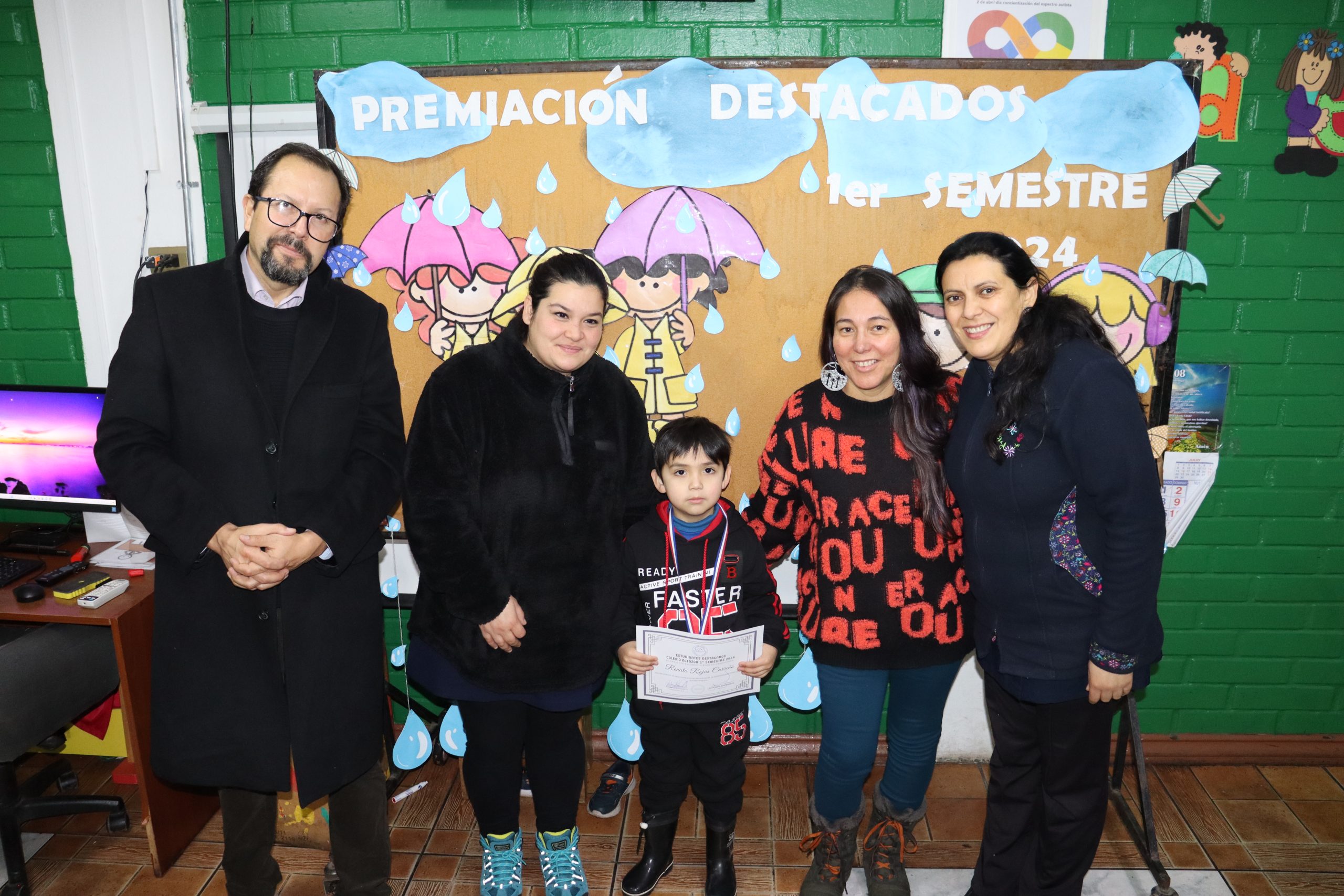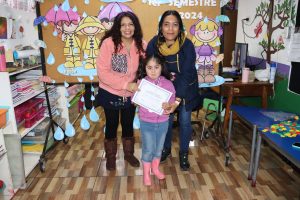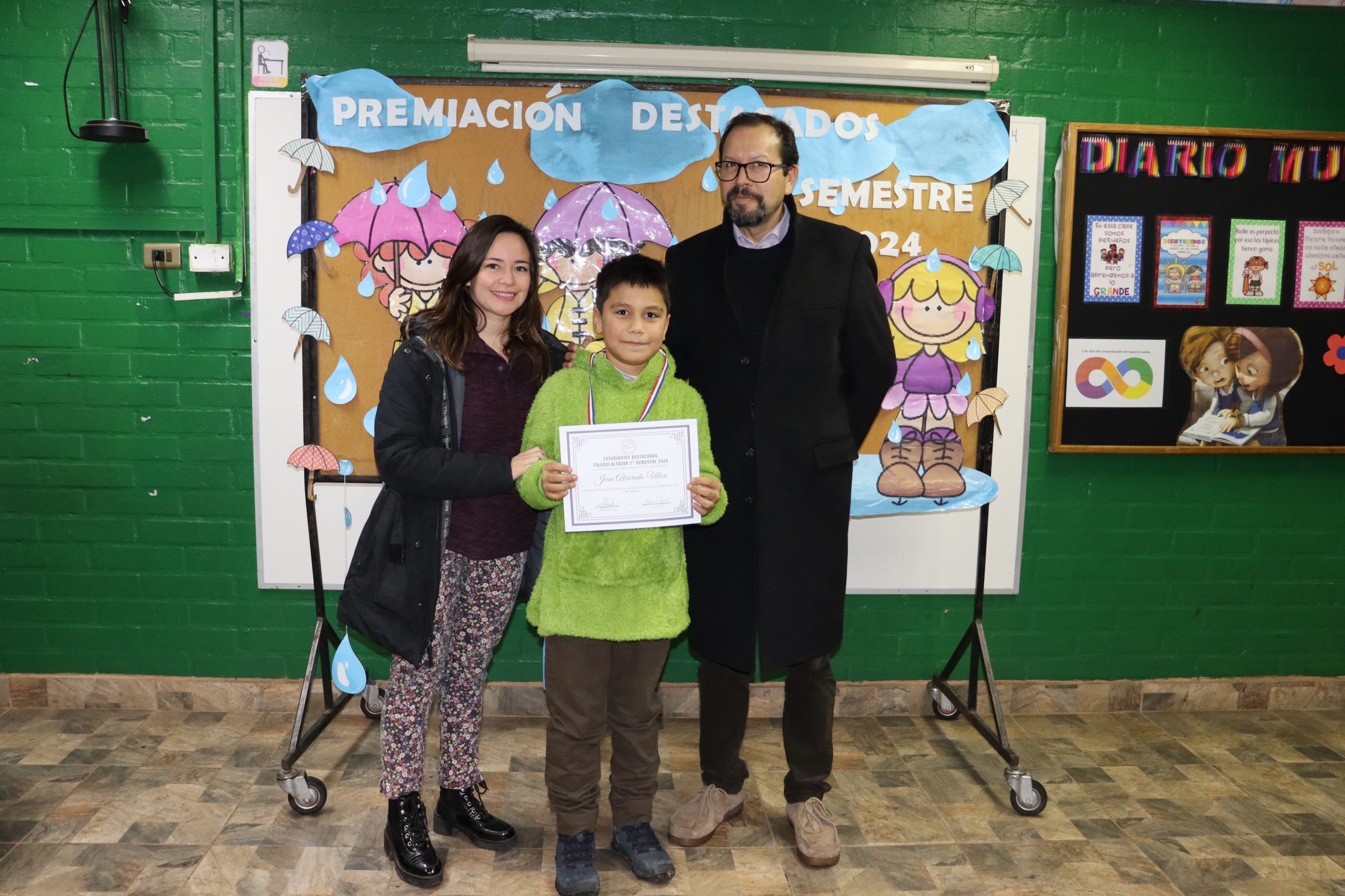 «La lluvia y el frío no fueron impedimento para reconocer a nuestros estudiantes más valiosos, con el ingenio y trabajo de nuestros equipos de aula logramos llevar un mini escenario a las salas de clases y visitar a cada uno de los cursos para realizar la entrega de medallas y diplomas a nuestros estudiantes destacados.