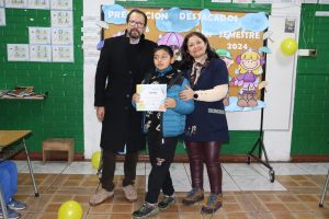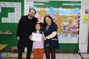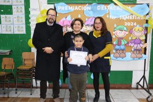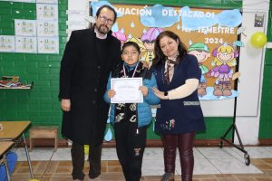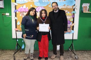 Nuestro director, Juan A. Tapia Bustamante, encabezó los reconocimientos, y junto a los docentes jefes, premió a los estudiantes destacados por los valores institucionales (trabajo en equipo, perseverancia, solidaridad, responsabilidad y respeto), además de los 1°, 2° y 3° lugar de rendimiento académico, más los destacados de Compumat y el Taller de Fútbol.