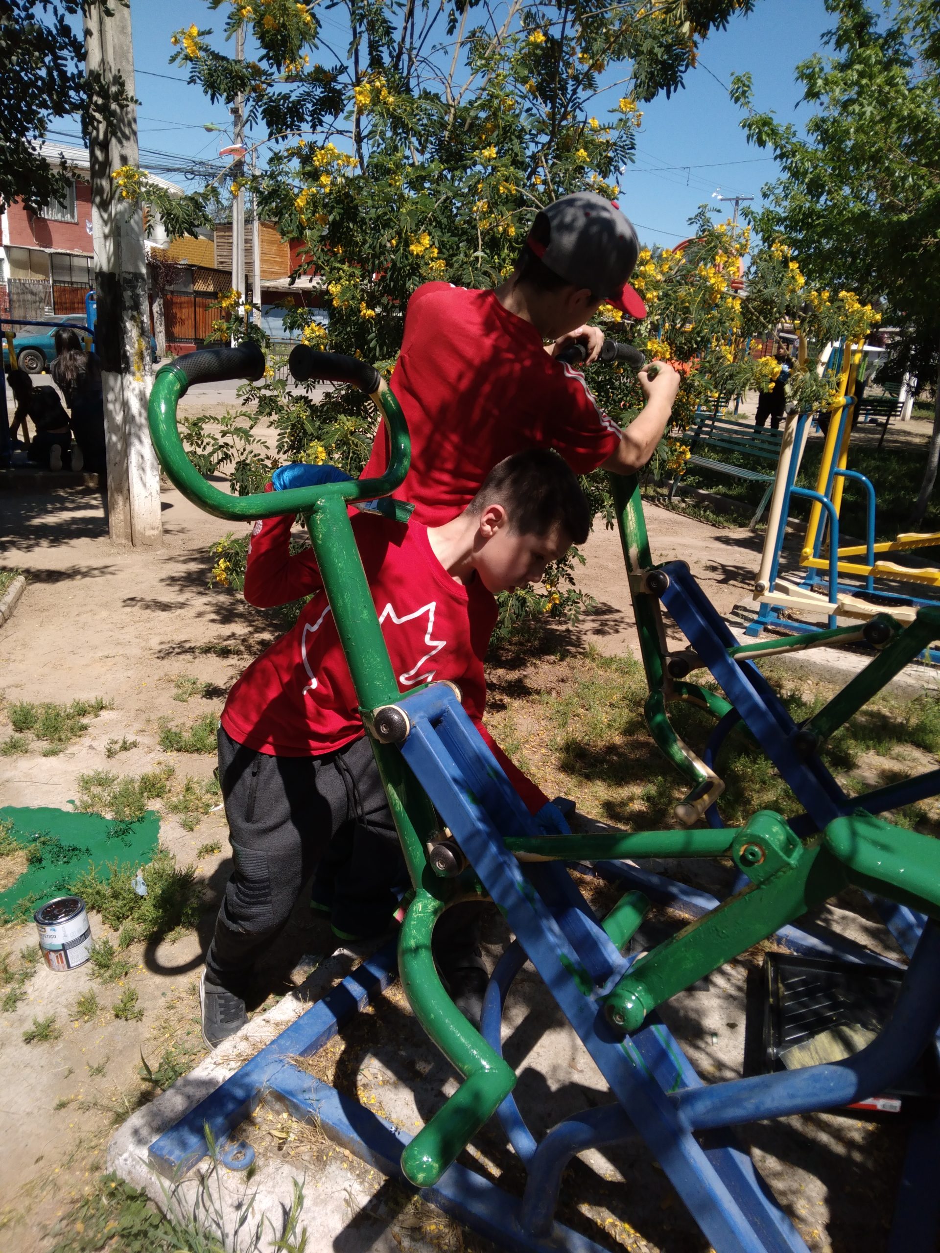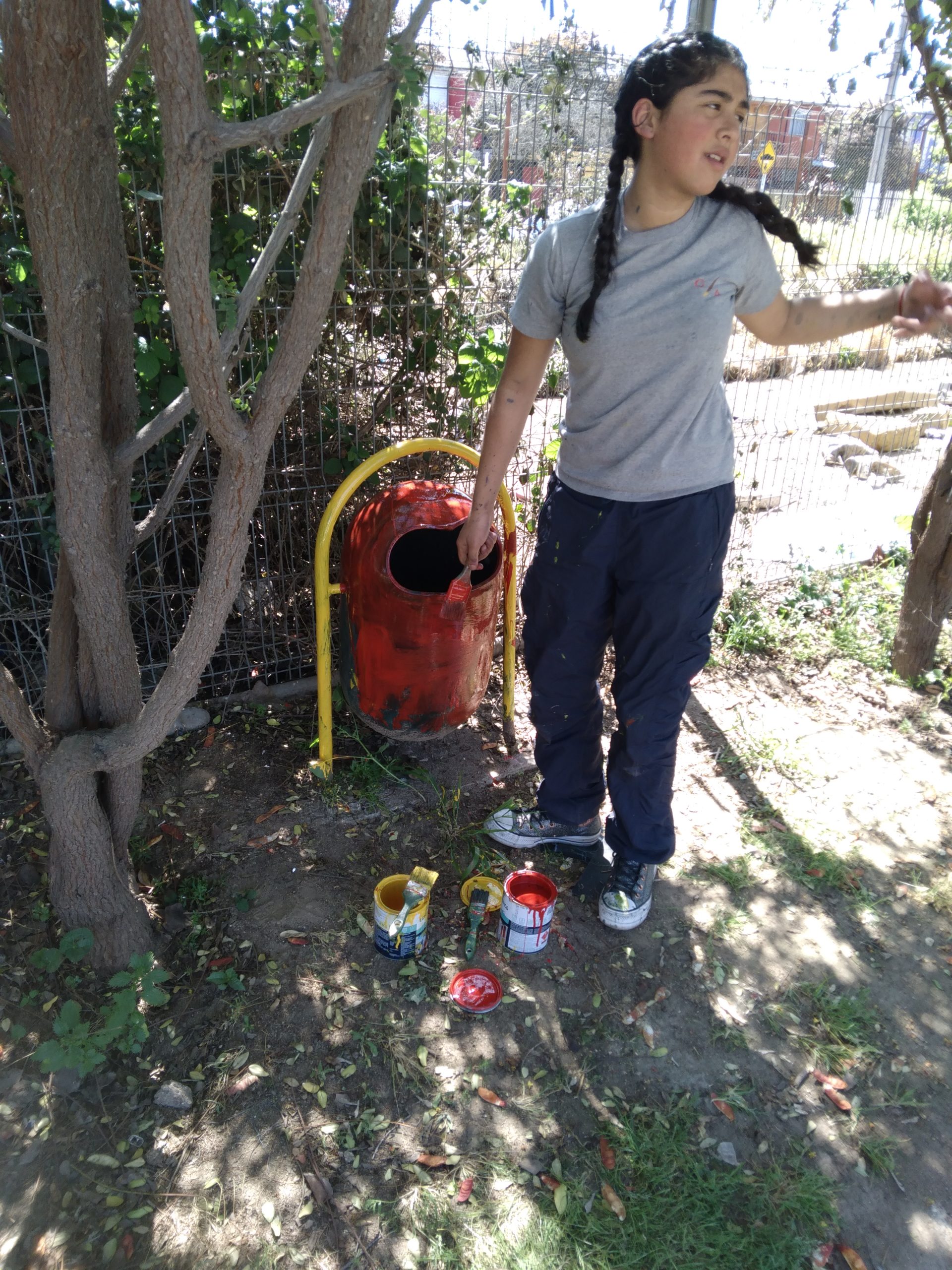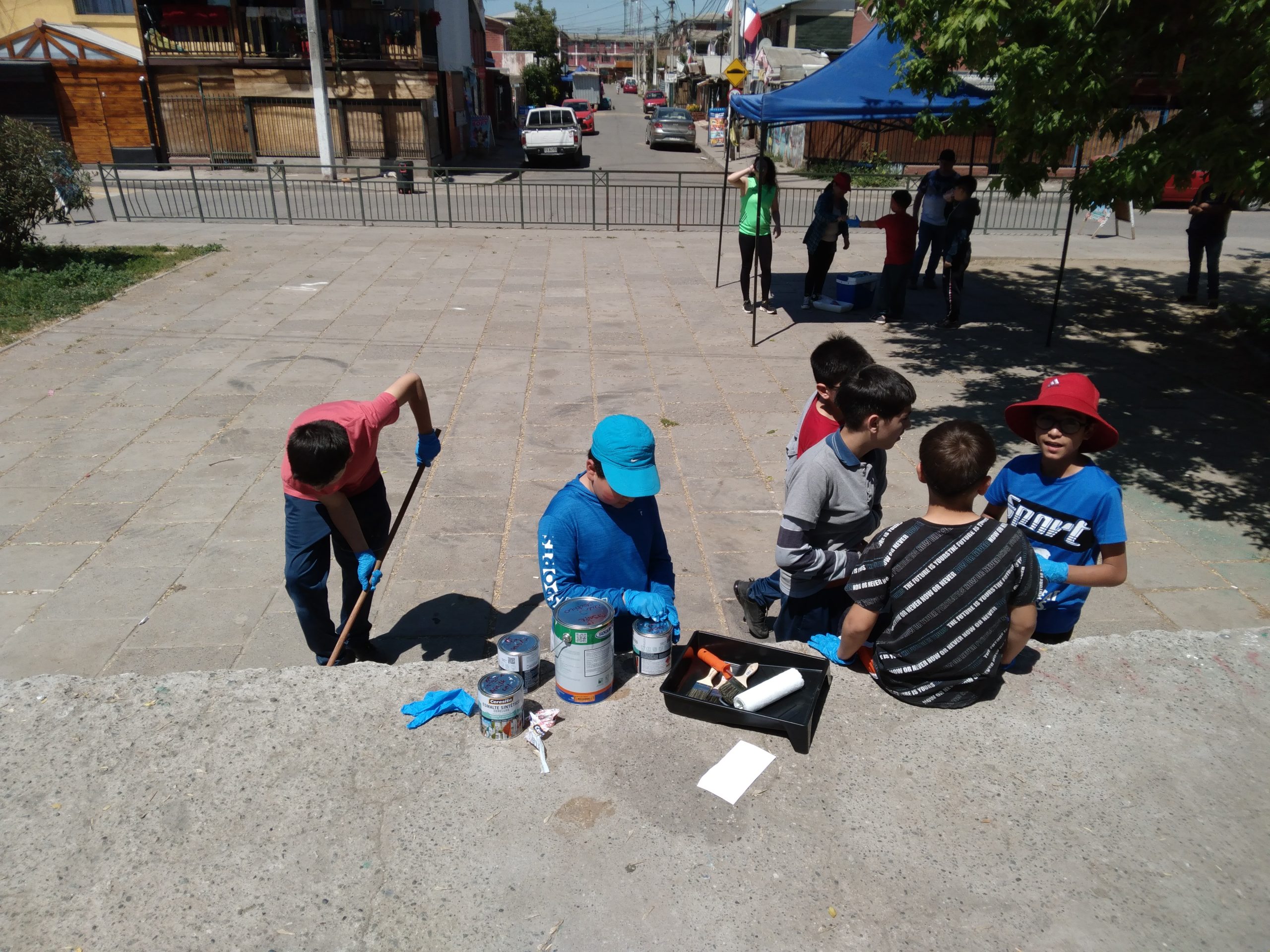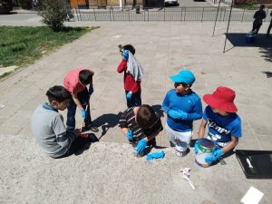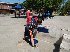 «En el contexto del Taller de Formación Ciudadana, y en el proyecto «Recuperación de nuestros espacios públicos», las profesoras Paula Fernández y Laura Barrera guiaron a los estudiantes de 5° año básico para llenar de colores la Plaza Trebuleu, en las cercanías de nuestra escuela.